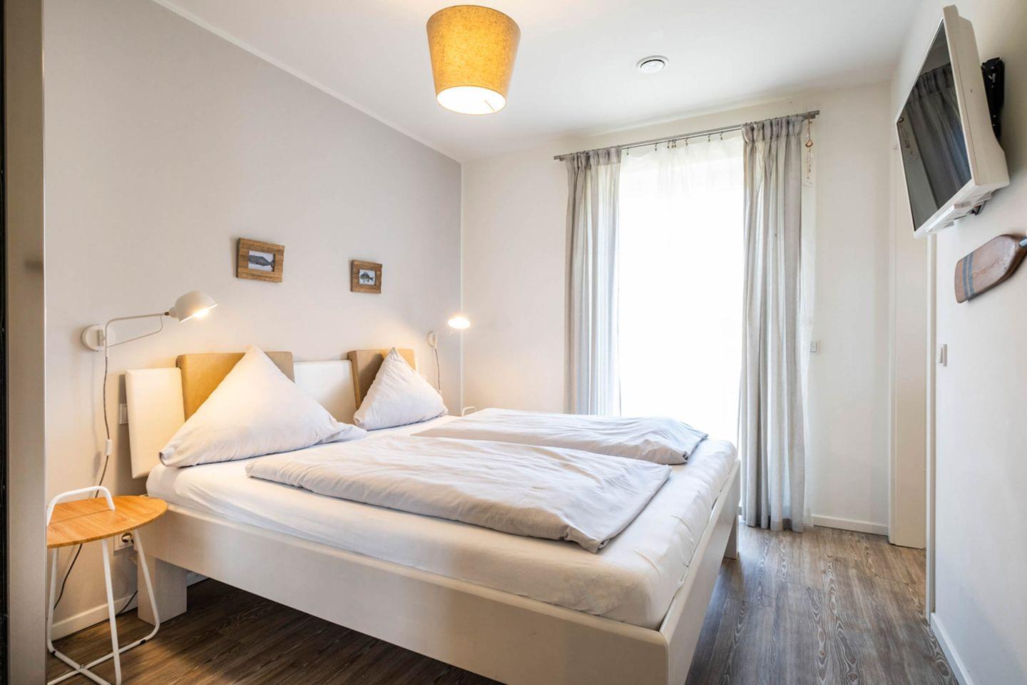 Das Appartement 0.6 befindet sich im Erdgeschoss und verfügt über eine Terrasse. Die Wohnung hat 2 Schlafzimmer, jeweils mit Doppelbett und Fernsehgerät ausgestattet. Eins der Schlafzimmer hat ein Duschbad en-Suite, das andere Duschbad ist vom Flur aus zu erreichen. Das Wohnzimmer mit Küchenzeile und Essbereich ist gemütlich im Landhausstil eingerichtet und lädt zum Verweilen und Relaxen ein.