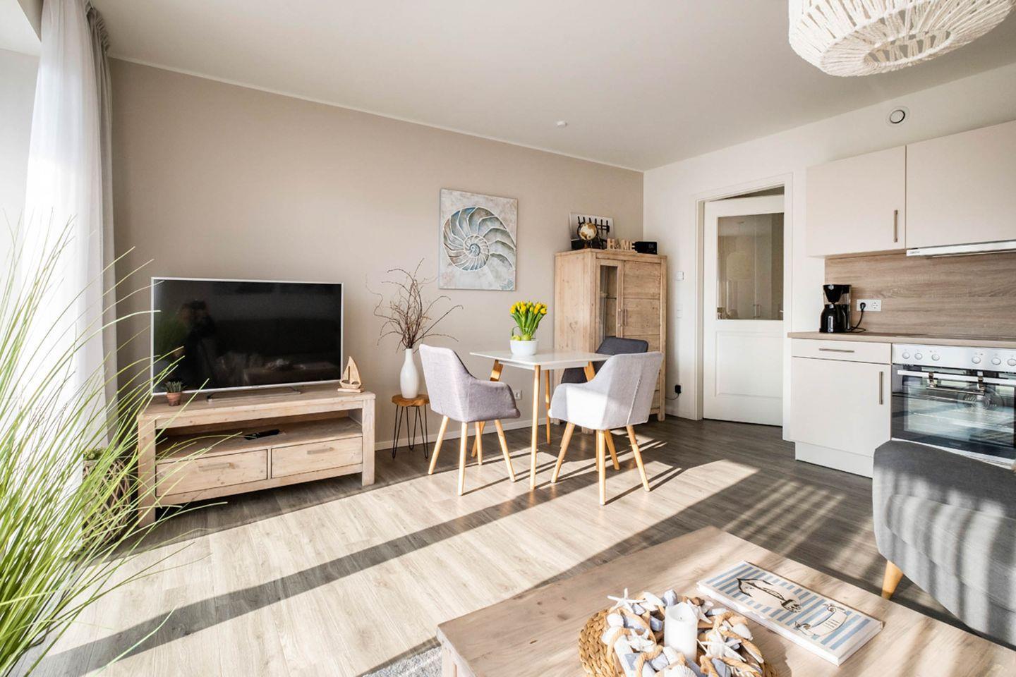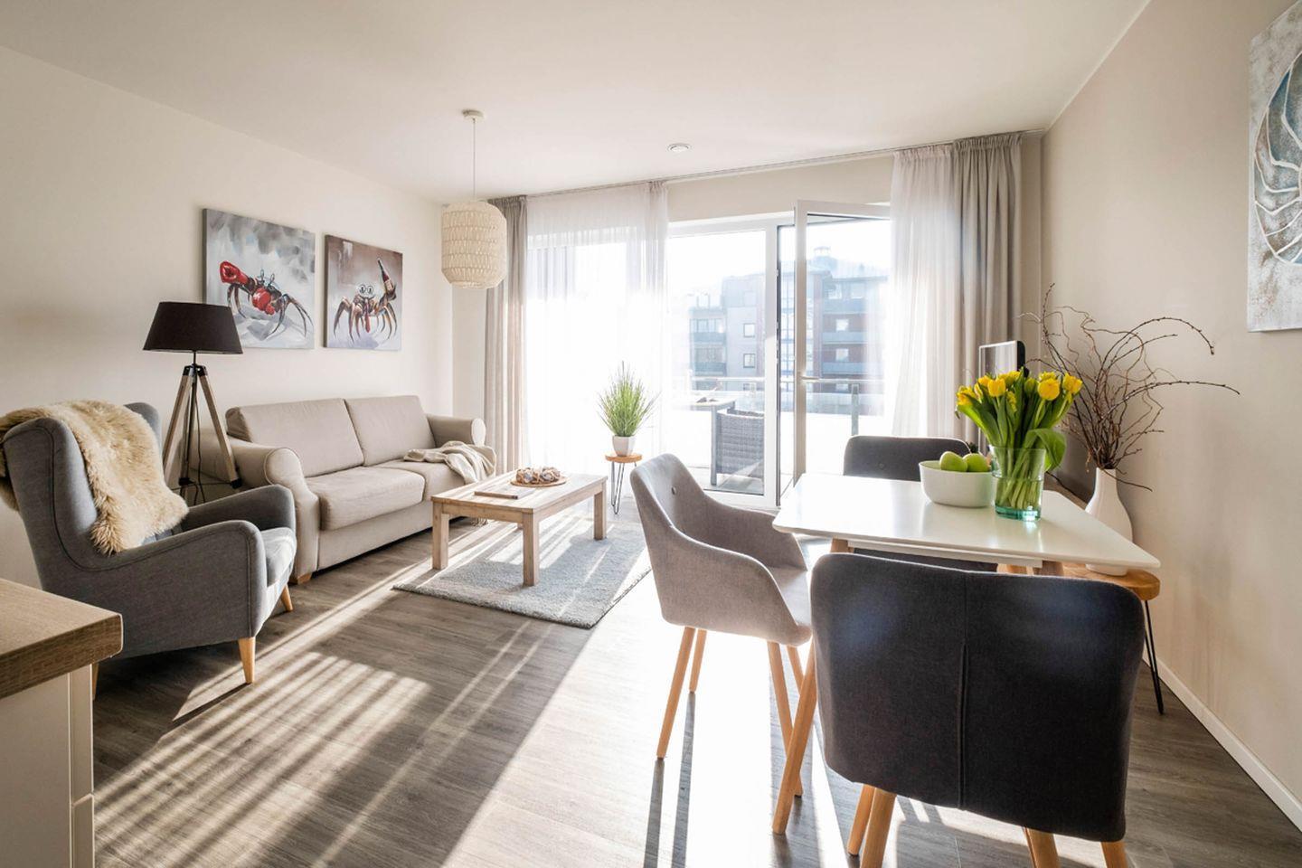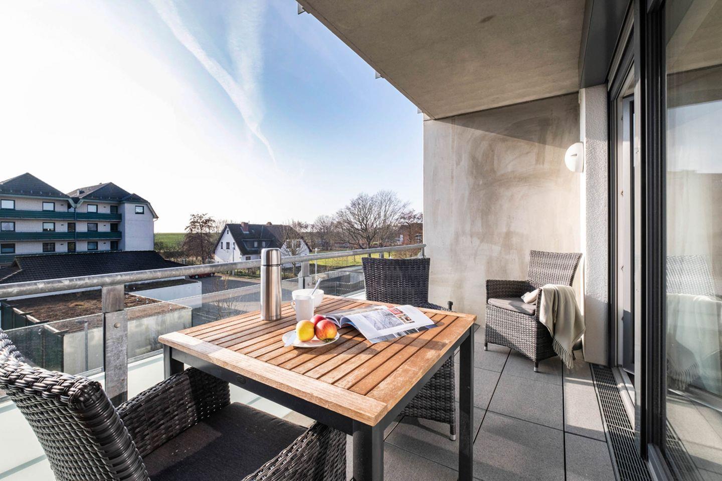 Moderne Ferienwohnung in Büsum mit Sauna, Balkon und Strandnähe für entspannte Urlaubstage.