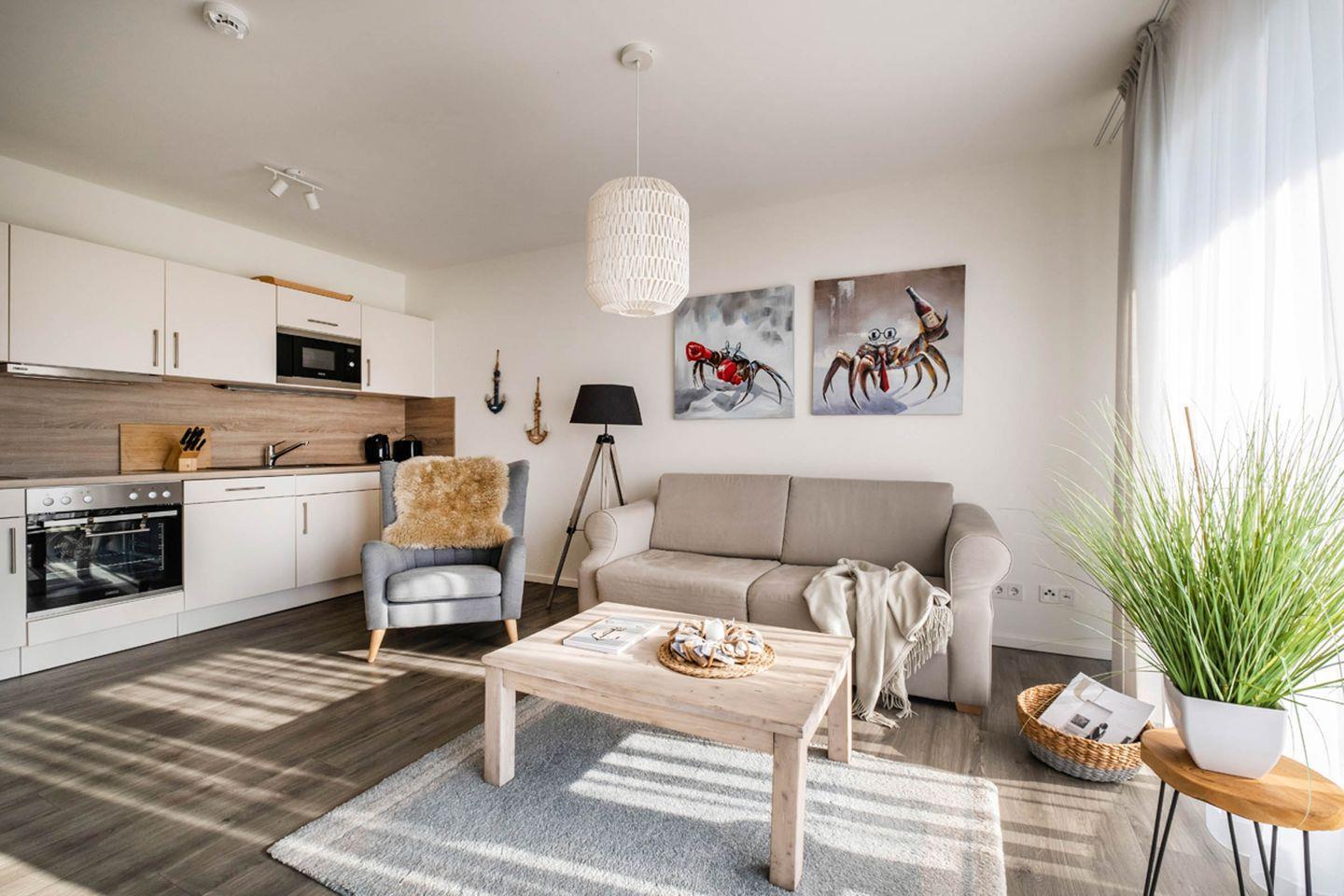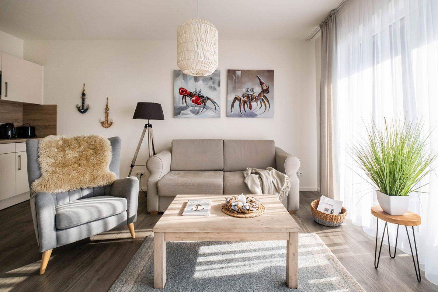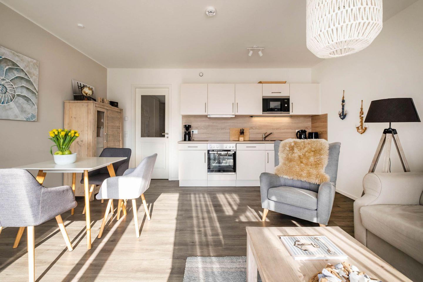 Moderne Ferienwohnung in Büsum mit Sauna, Balkon und Strandnähe für entspannte Urlaubstage.