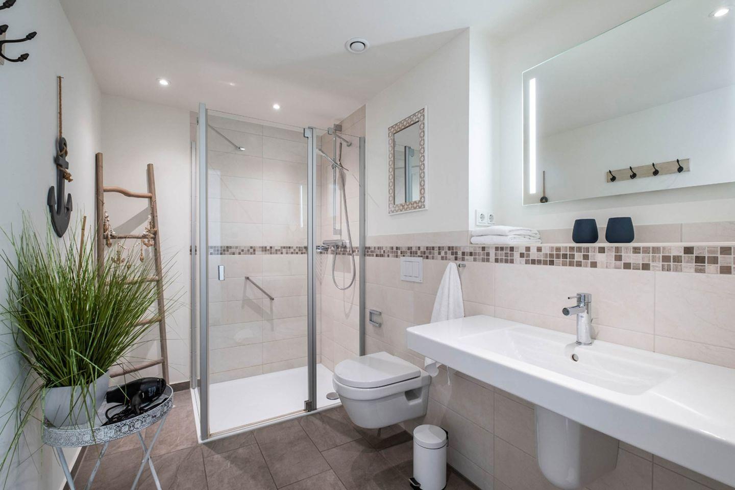 Sanitär: Duschbad, Handtuchheizung, Haar-Föhn, Kosmetikspiegel