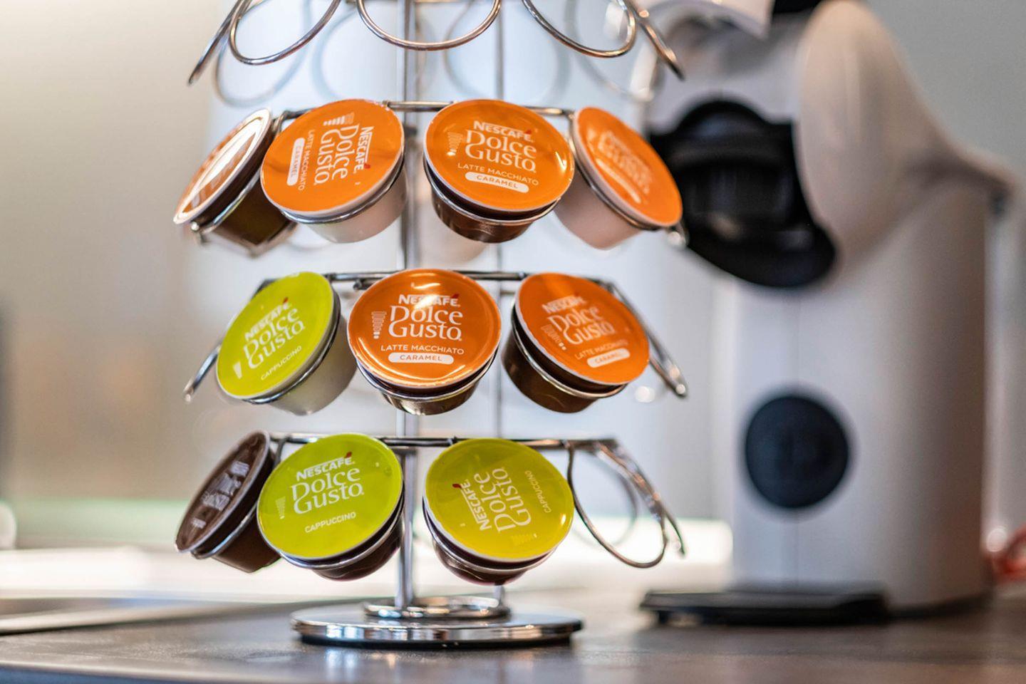 Küche: Backofen, Cerankochfeld, Mikrowelle mit Heißluft Funktion, Geschirrspüler, Kühlschrank mit Gefrierfach, Kaffeemaschinen, Wasserkocher, Toaster, Eierkocher, Handrührgerät mit Stabmixer,
