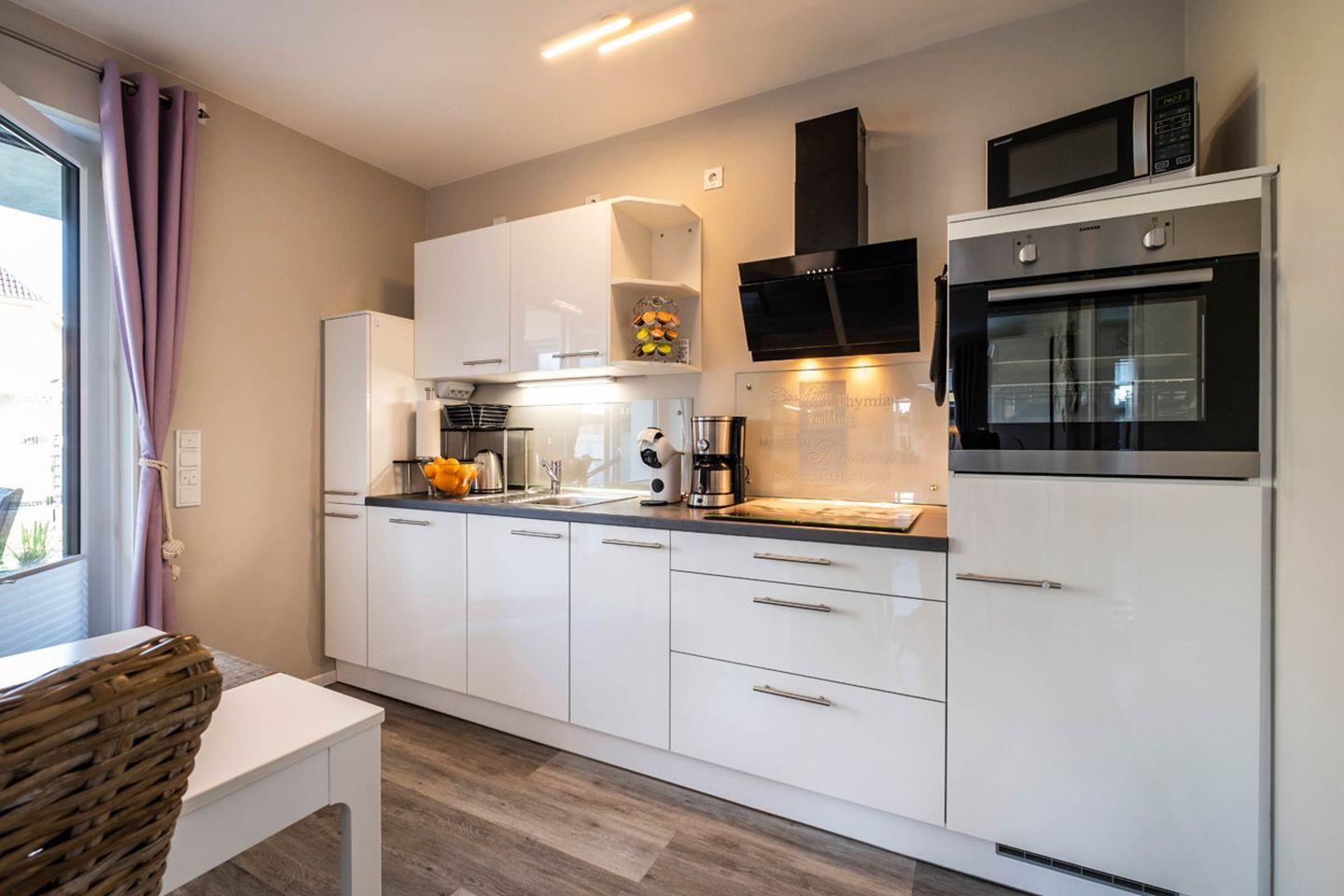Die umfangreich ausgestattete Wohnküche mit einem ausziehbaren Esstisch, rundet die gemütliche „Wohlfühl"-Atmosphäre ab.