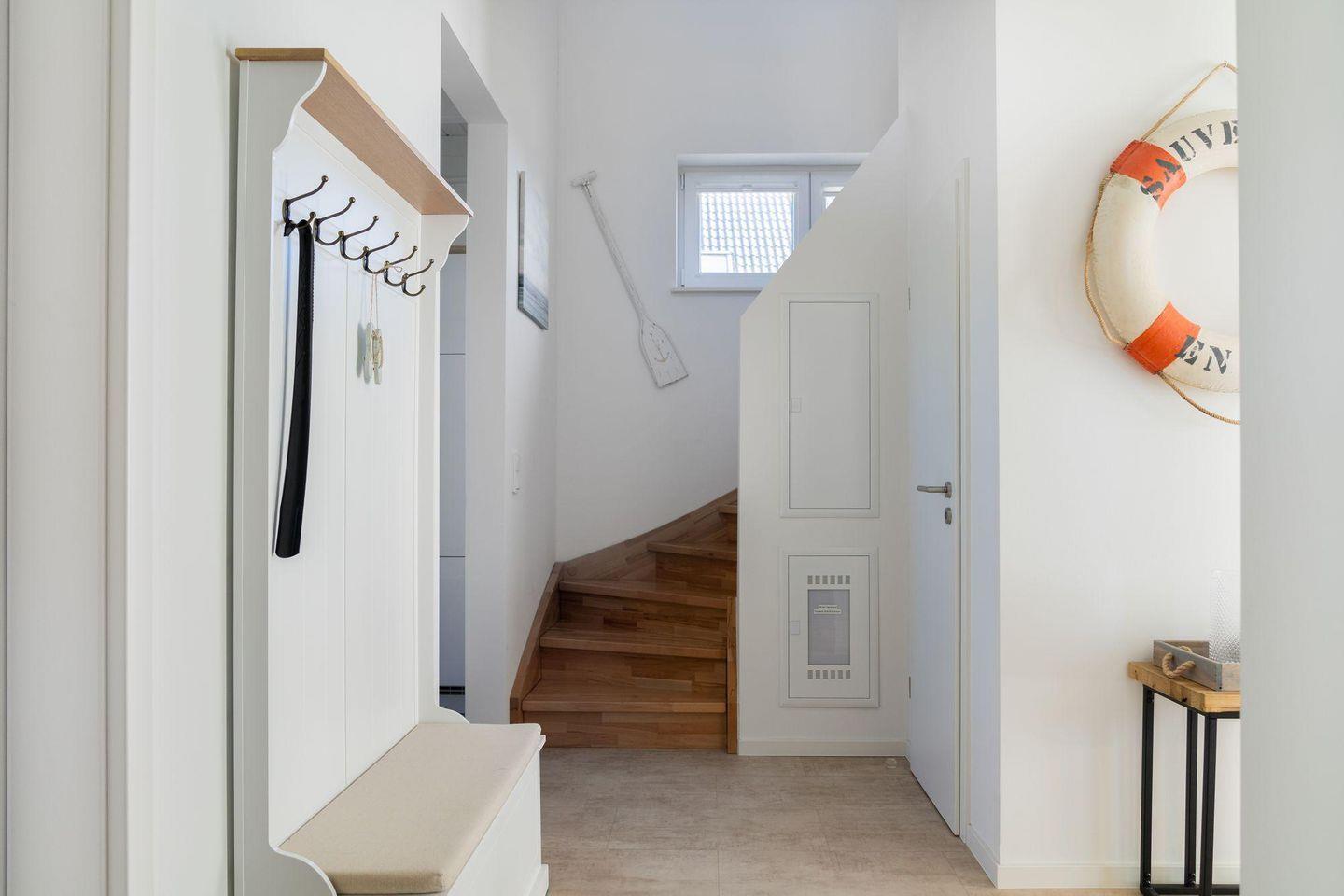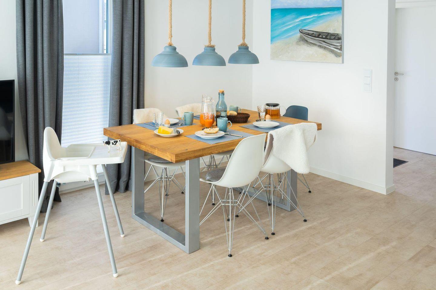 Das freistehende Haus „Dat Verhaal“ verfügt im Erdgeschoss über einen lichtdurchfluteten Wohn- und Essbereich mit offener Terrasse und einem direkten Zugang zum Garten. Auch die moderne Küche des Herstellers Nobilia lässt kaum Wünsche offen und lädt mit ihren hochwertigen Elektrogeräten von Bosch und der umfangreichen Ausstattung alle Hobbyköche ein. Selbst eine Original-Vorwerk-Thermomix steht hier den Gästen zur Verfügung!