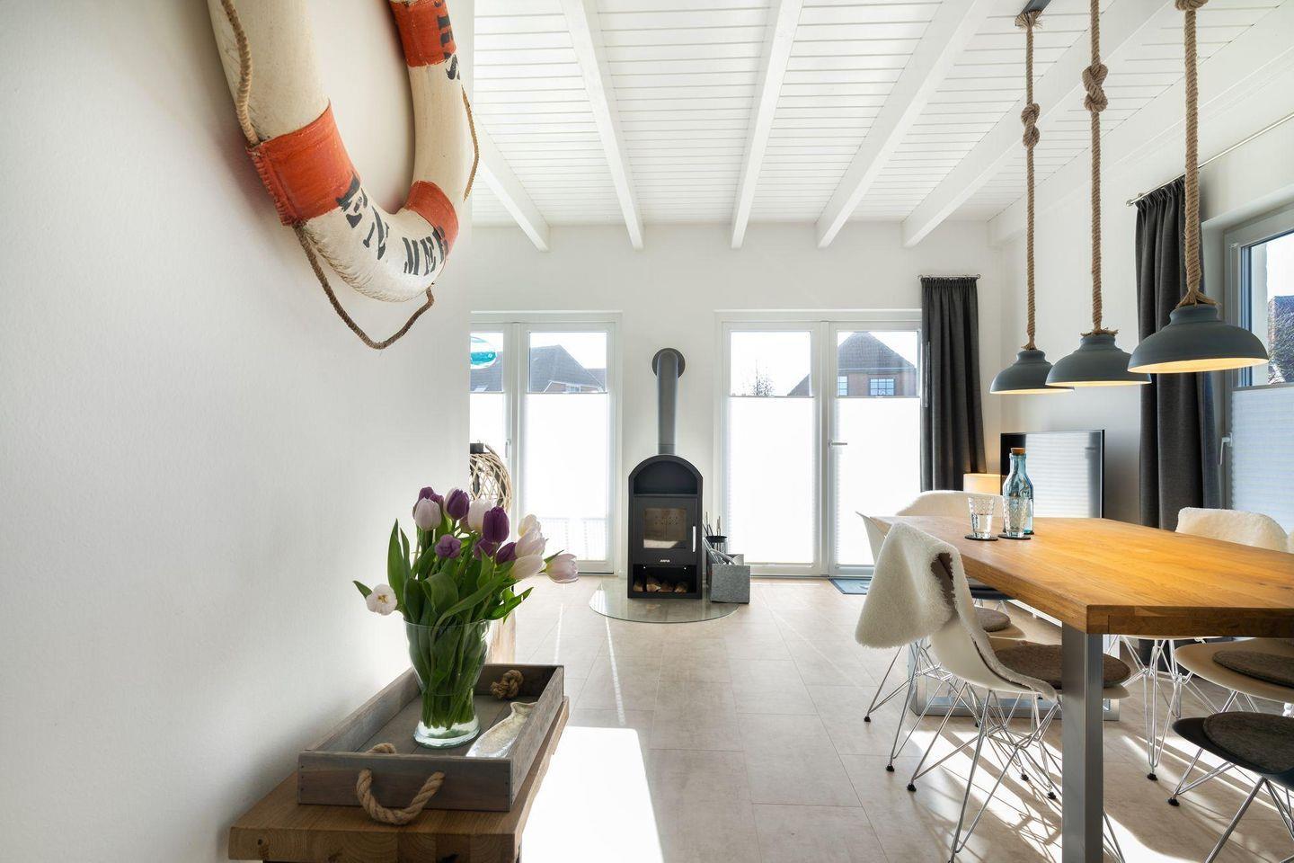 Das maritim eingerichtete Ferienhaus "Dat Verhaal" wirkt mit seiner ca. 79 m² großen Wohn- und Nutzfläche wie ein Raumwunder und bietet seinen Bewohnern reichlich Platz für mindestens vier Gäste. Einen oder gar zwei zusätzliche Schlafplätze bietet eine gemütliche Schlafcouch mit Federkern im Wohn- und Essbereich.