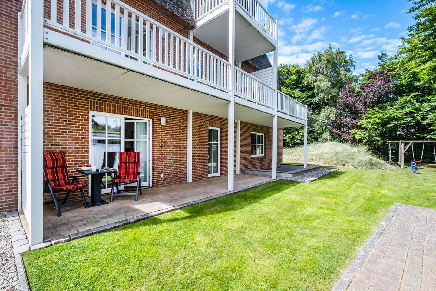 Das Appartement 1.5 befindet sich im Erdgeschoss mit Terrasse. Im Wohnraum finden Sie eine gemütliche Eckgarnitur. Die Küche und der Essbereich sind im Wohnbereich integriert. Das Schlafzimmer ist mit Doppelbett mit Komforthöhe und TV Wandmontage ausgestattet. Das Bad verfügt über eine barrierefreie Dusche. Fußbodenheizung befindet sich im ganzen Appartement. Auf die Terrasse gelangen Sie vom Wohnraum und Schlafzimmer, die in Nordlage liegt. Das Appartement verfügt über eine Gegensprechanlage mit Kamera. Im Keller finden Sie Waschmaschine und Trockner (gebührenpflichtig), Abstellraum für Fahrräder und einen gemeinschaftlichen Fitnessraum. Aufzug im Haus. Am Haus finden Sie einen weiteren abschließbaren Fahrradabstellraum und einen kleinen Spielplatz für unsere kleinen Gäste.