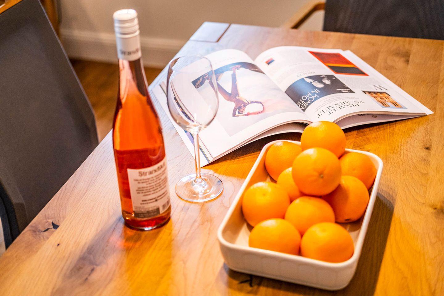 Küche: Backofen, Mikrowelle, Cerankochfeld, Geschirrspüler, Kühl- und Gefrierkombination, Kaffeemaschine, Wasserkocher, Toaster