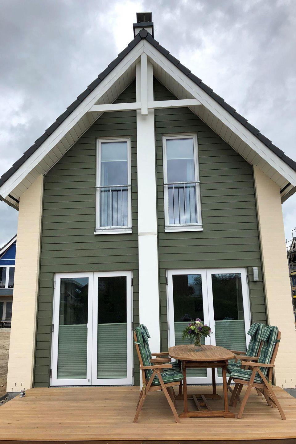 Modernes Ferienhaus im NordseeResort Büsum mit Sauna, Kamin und Terrasse für erholsamen Urlaub.