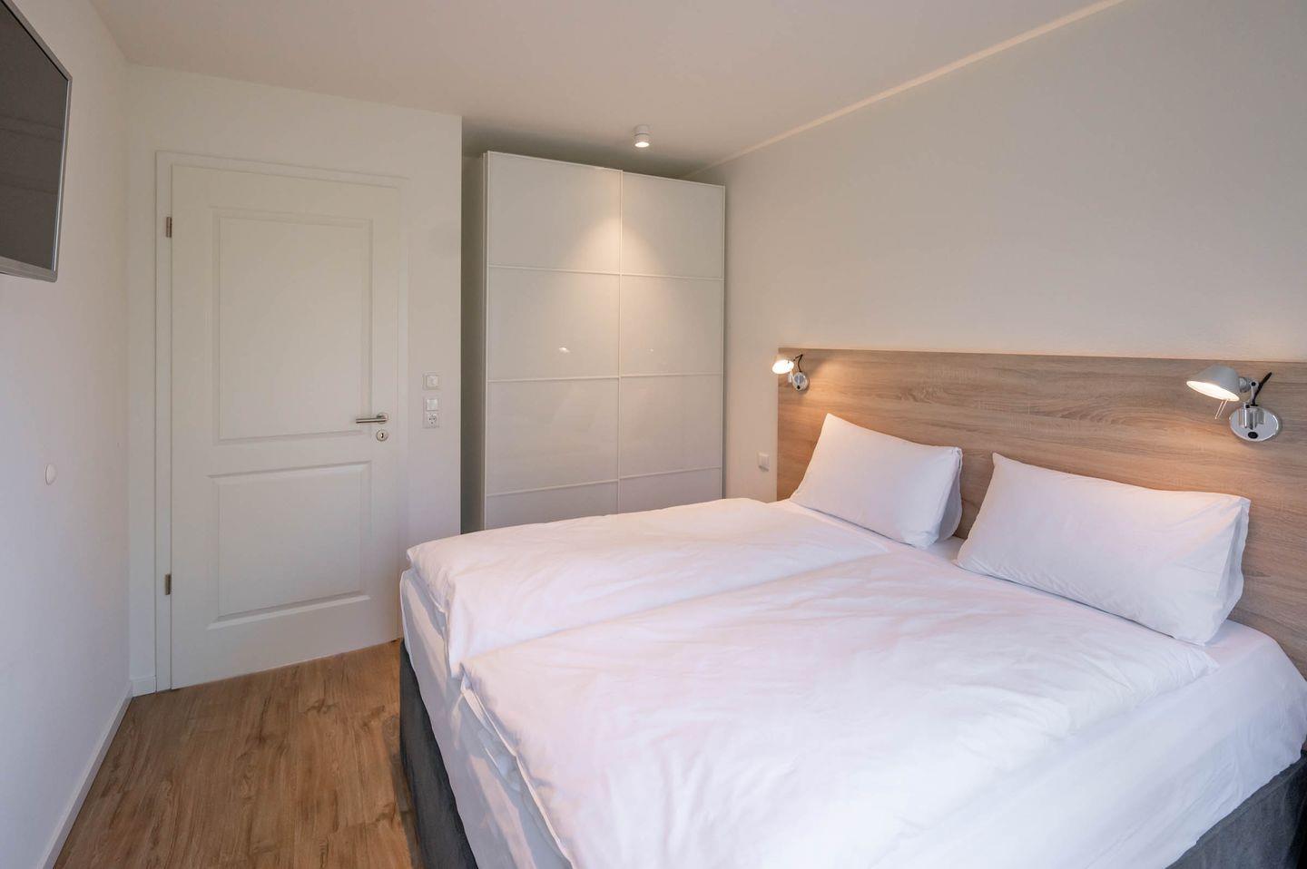 Wir sind der Überzeugung, dass ein guter Schlaf der wichtigste Faktor für einen erholsamen Urlaub und einen ausgeglichenen Start in den Tag darstellt. Deswegen haben wir viel Wert auf die Auswahl der Betten gelegt und uns für Coco-Mat-Betten aus Griechenland entschieden. Die hinterleuchtete Bettrückwand sorgt für eine gemütliche Atmosphäre und lädt dazu ein, den Tag an der Küste in Ruhe ausklingen zu lassen. Genießen Sie nach dem Aufwachen am Morgen den Blick ins Grüne oder starten Sie mit einem Kaffee/Tee und einer Folge ihrer Lieblingsserie auf einem der schlafzimmereigenen Fernseher. Ein doppelter Kleiderschrank in jedem Schlafzimmer hält genügend Platz bereit, um alles Wichtige zu verstauen und aufzuhängen.