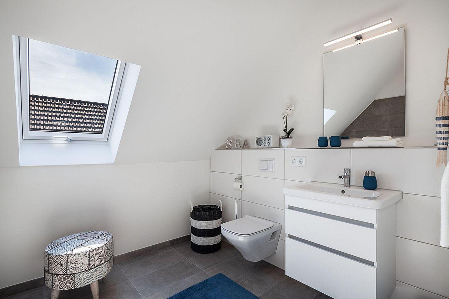 Das Wohlfühlen setzt sich im Badezimmer im Erdgeschoss gleich fort. Mit der bodenebenen Rainshower-Dusche und der zusätzlichen Saunakabine wird das Bad in ein kleines Spa verwandelt und Wellness-Feeling kommt auf. Das ist Tiefenentspannung für den Körper. Das Bad im Obergeschoss verfügt über eine Whirl-Badewanne zum Relaxen.