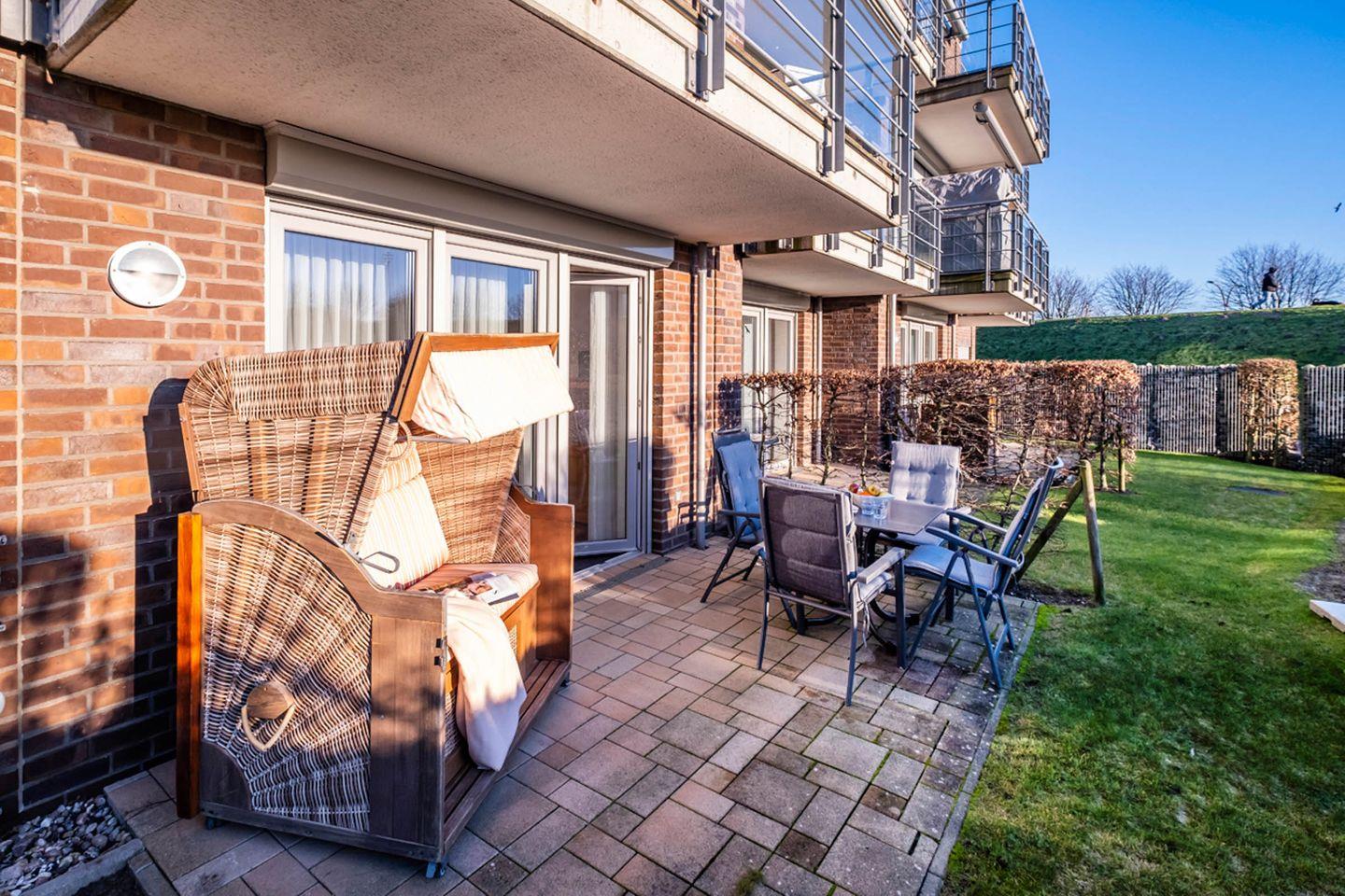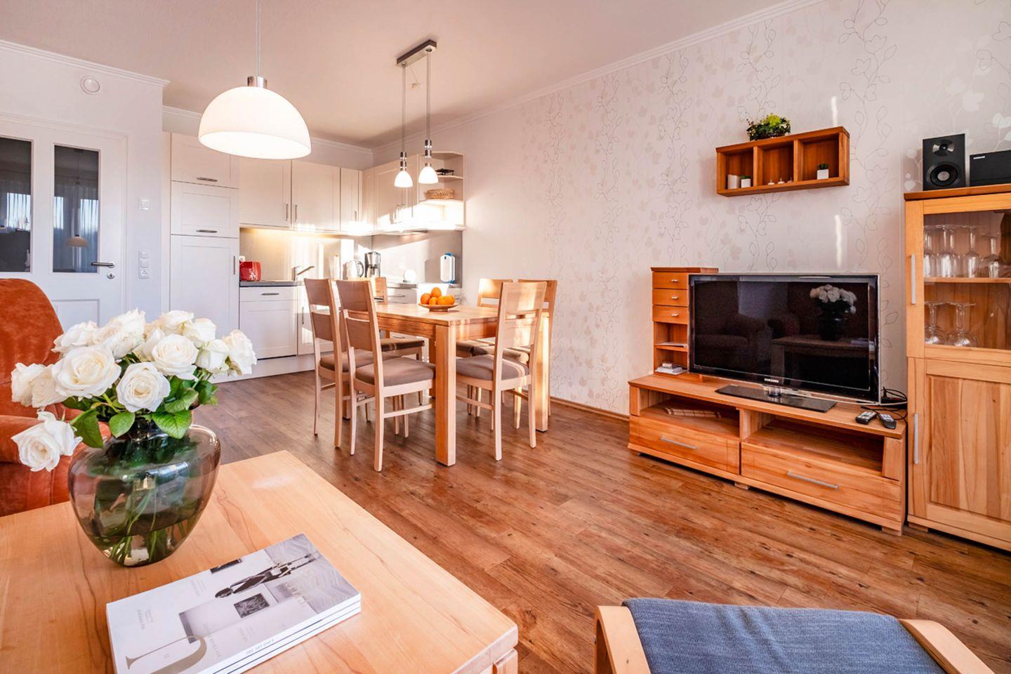 Haus Seehafen Apartment 0.2 in Büsum bietet auf 68 m² modernen Komfort für bis zu 4 Personen. Eine offene Küche mit umfangreicher Ausstattung, zwei Schlafzimmer, ein Wohnzimmer und eine Terrasse sorgen für Wohlbefinden. Die strandnahe Lage, ein eigener Parkplatz sowie WLAN und Aufzug runden das Angebot ab.