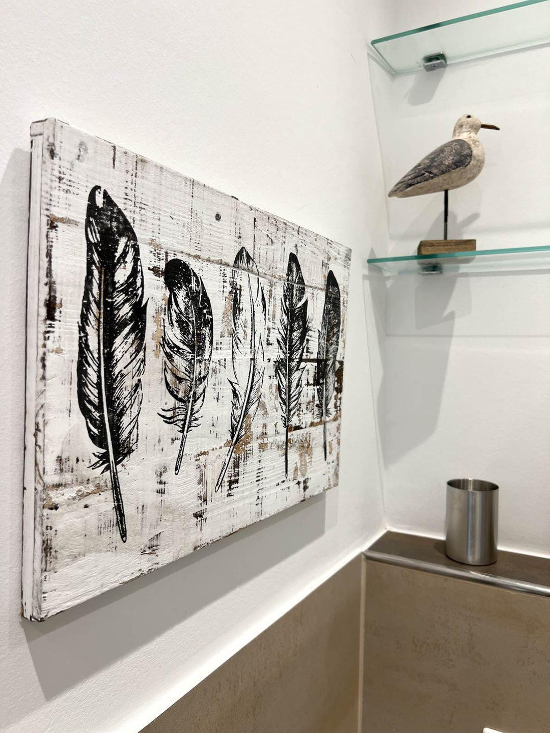 Vom eingangsnahen Stellplatz geht‘s direkt durch das Treppenhaus und mit dem Fahrstuhl des Hauses "Nordseeblick" zum im obersten Stock gelegenen Appartement. 2021 neu ausgestattet, treffen im Möövnest 1 nordischer Charme auf nachhaltiges Design.