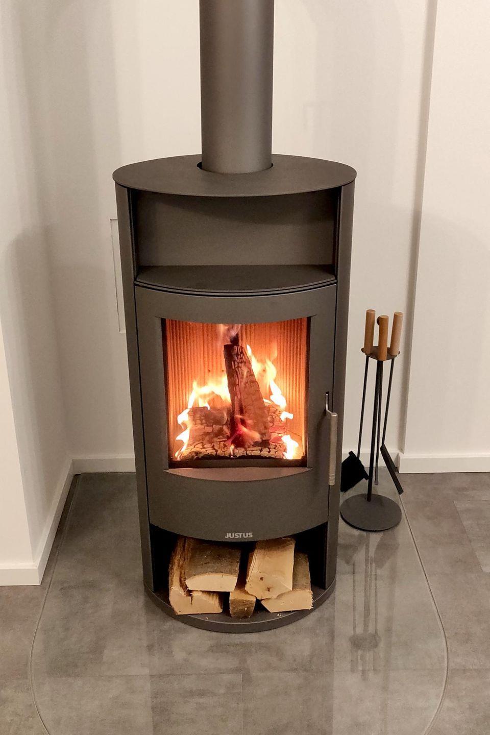 Wohn- und Essbereich: großes Ecksofa, Esstisch mit 4 Stühlen, Kaminofen