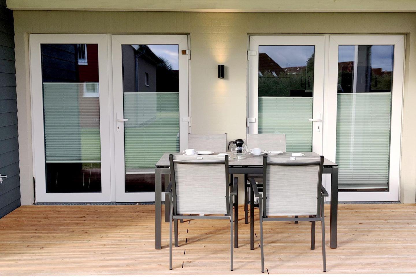 Modernes NordseeResort Apartment mit Sauna, Kamin und Terrasse nahe Strand und Einkaufsmöglichkeiten.