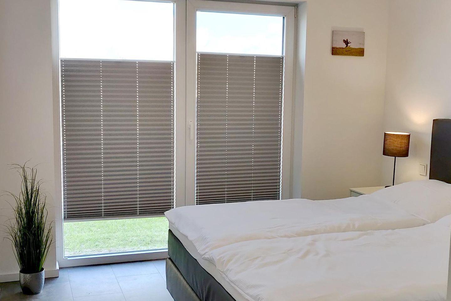 Beide Schlafzimmer sind mit einem Boxspringbett (180x200), einem Kleiderschrank und Verdunklungsplissees sowie einem Insektenschutz ausgestattet.