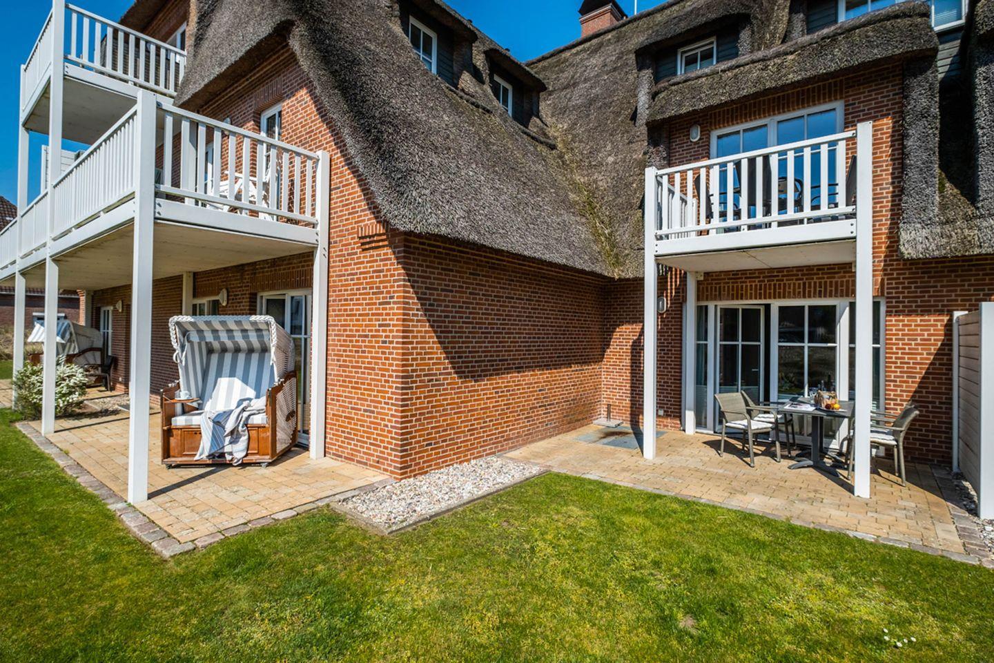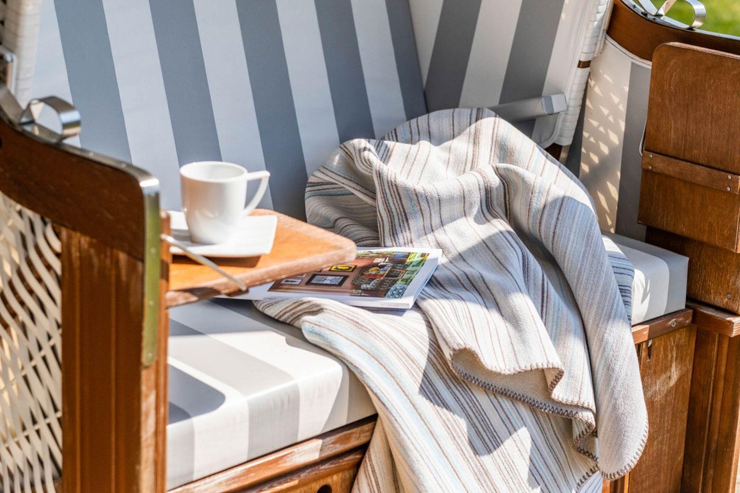 Terrasse: 2 Terrassen in Südlage, Terrassenmöbel, Strandkorb auf der Terrasse