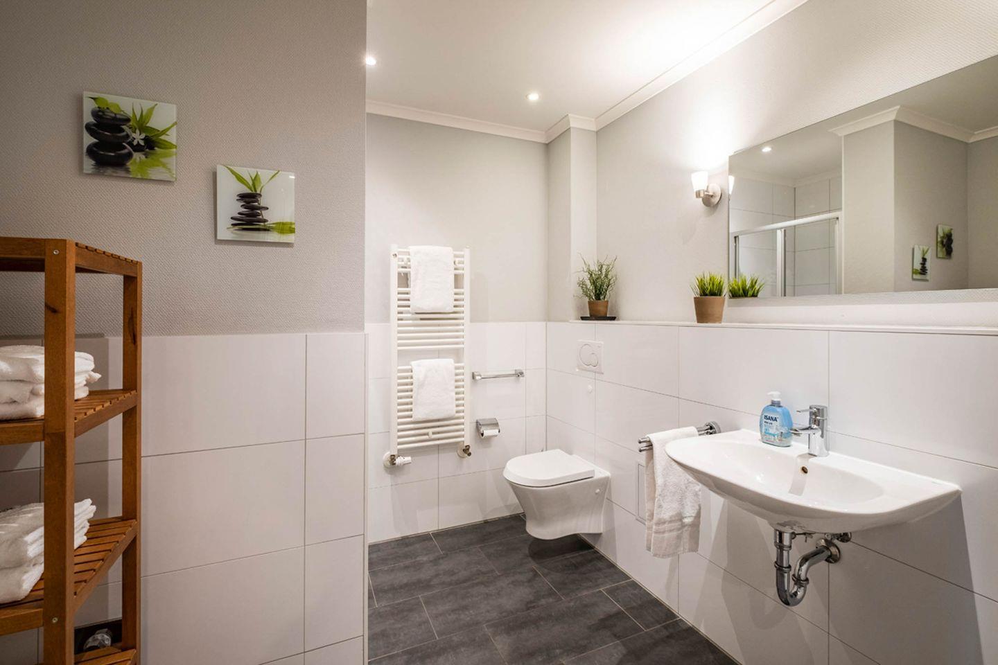Sanitär: Duschbad, Handtuchtrockner, Föhn