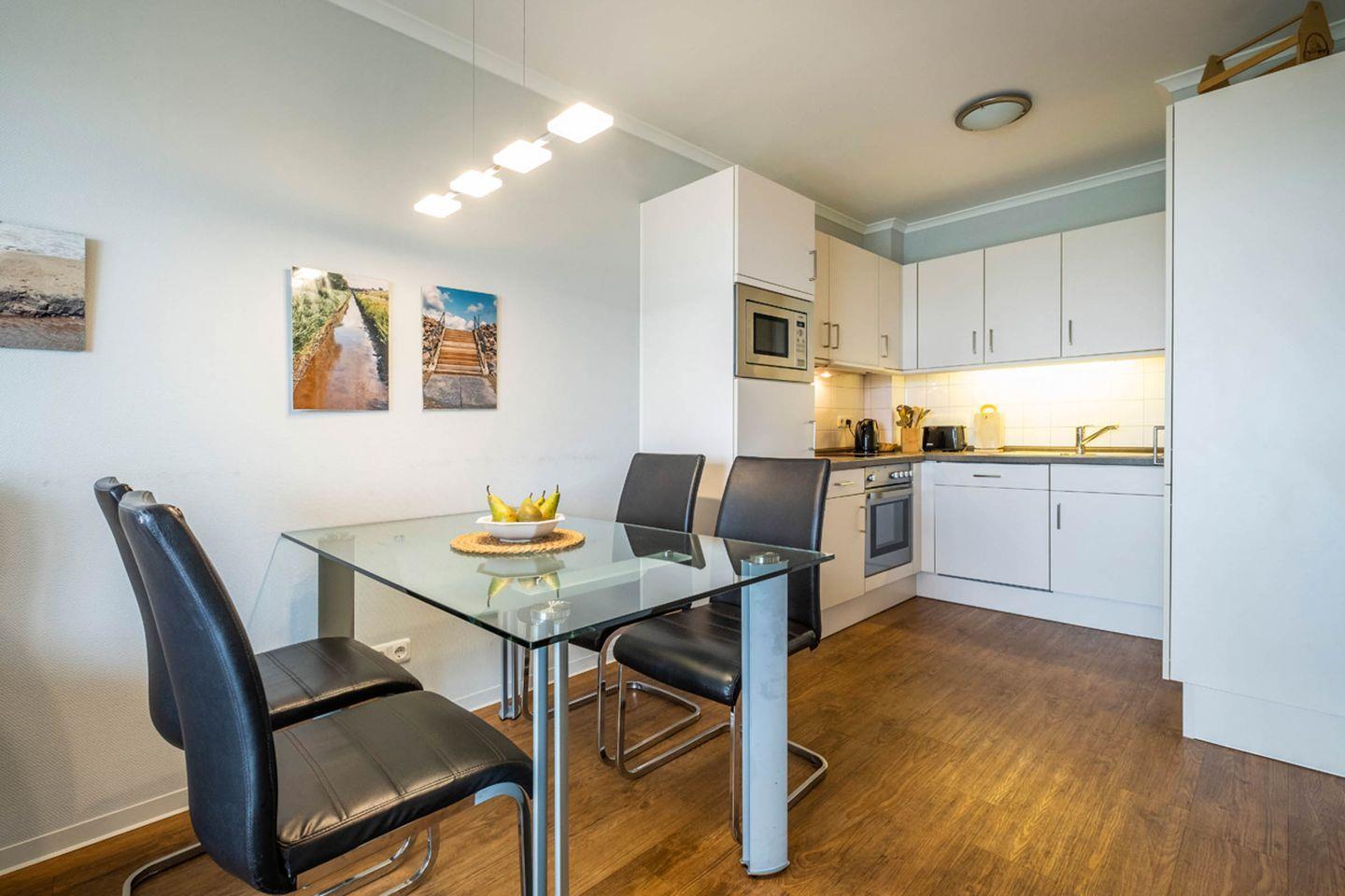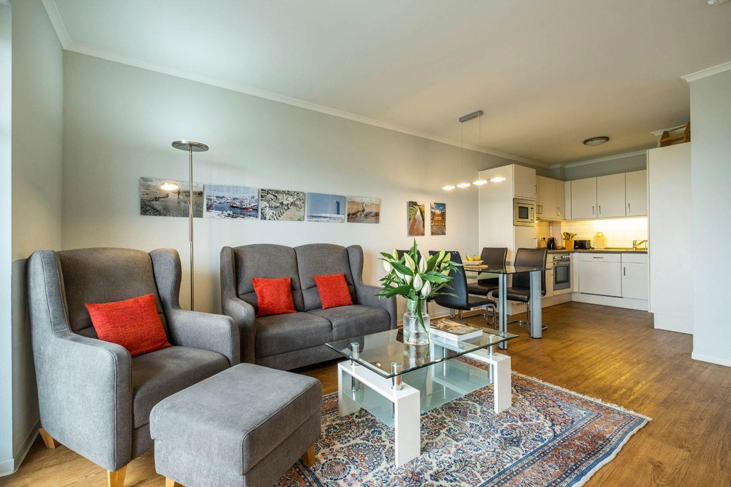 Das Haus Hafenresidenz Apartment 2.3 in Büsum bietet auf 52 m² einen modernen Wohnkomfort mit einem Schlafzimmer, offenem Wohn- und Küchenbereich, bodengleicher Dusche sowie Balkon mit Meerblick. WLAN, Spülmaschine und zwei TVs gehören zur Ausstattung. Ein Aufzug, ein Privatparkplatz und die Nähe zu Strand, Einkaufen und Restaurants (jeweils 250 m) runden das Angebot ab.