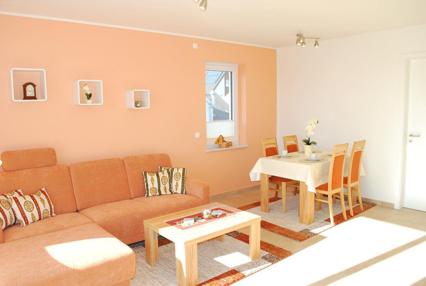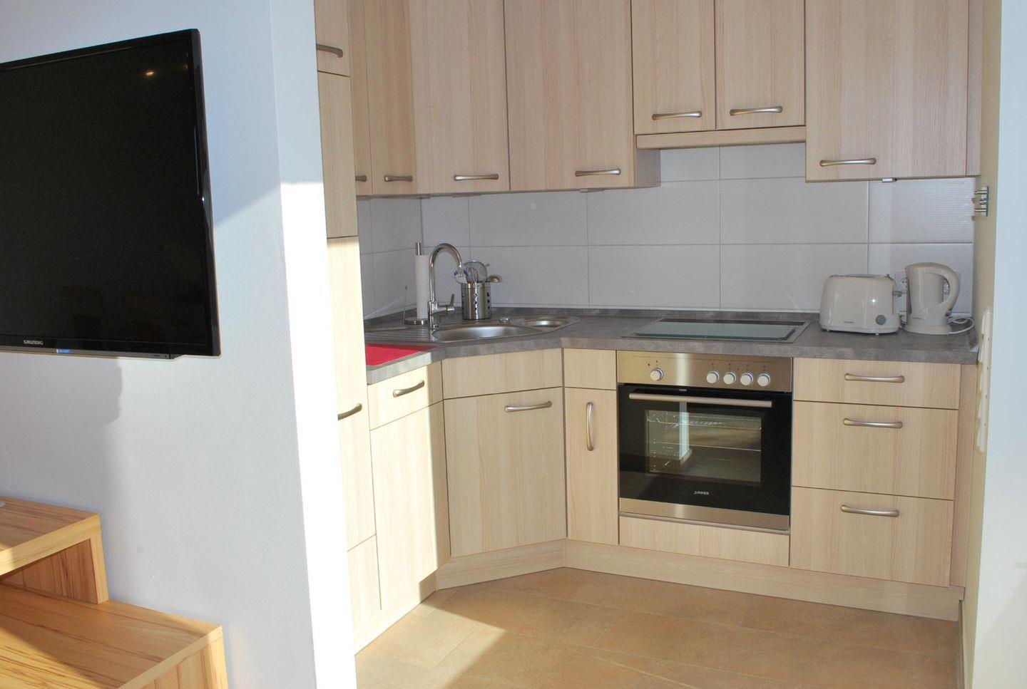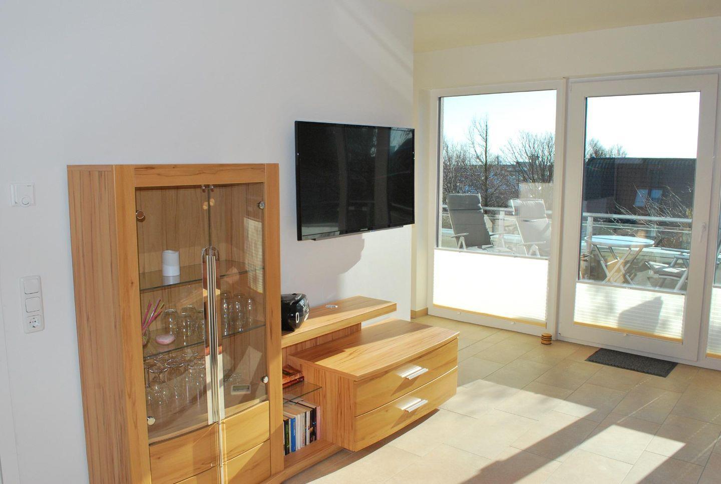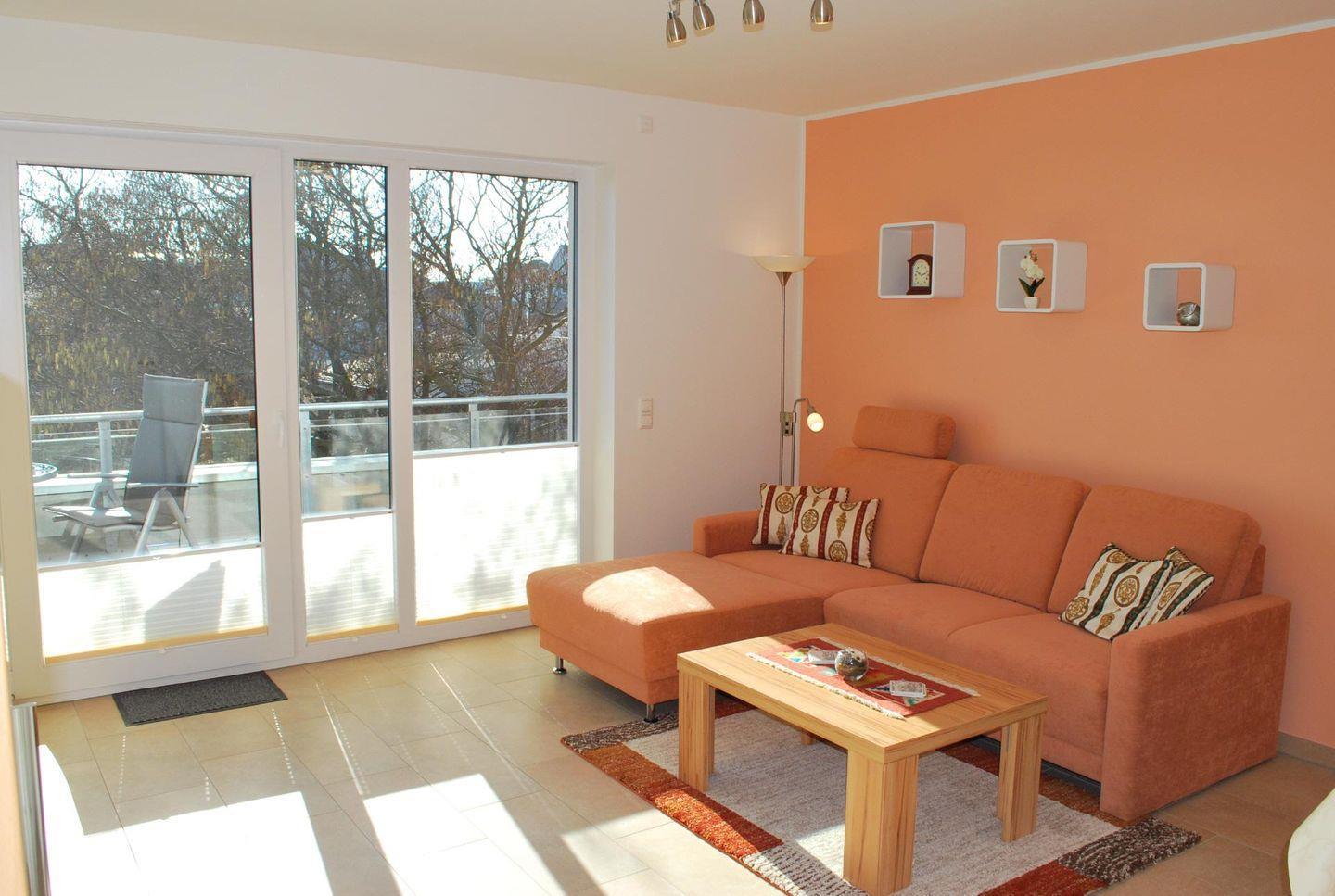 Die Ferienwohnung 3.1 ist eine moderne 2-Raum-Wohnung mit Balkon im III. Obergeschoss. Die Küche ist offen zum Wohn-Essbereich. Der Essbereich geht in den Wohnbereich über. Das Sofa verfügt über eine Schlaffunktion. Das schöne Badezimmer verfügt über eine barrierefreie Dusche, WC, Handtuchtrockner und Haar-Föhn. Es befinden sich Haltegriffe am WC, das Waschbecken ist höhenverstellbar und der Spiegel darüber ist kippbar. Vom Wohnbereich gelangen Sie direkt auf den Balkon, der mit Balkonmöbeln ausgestattet ist.