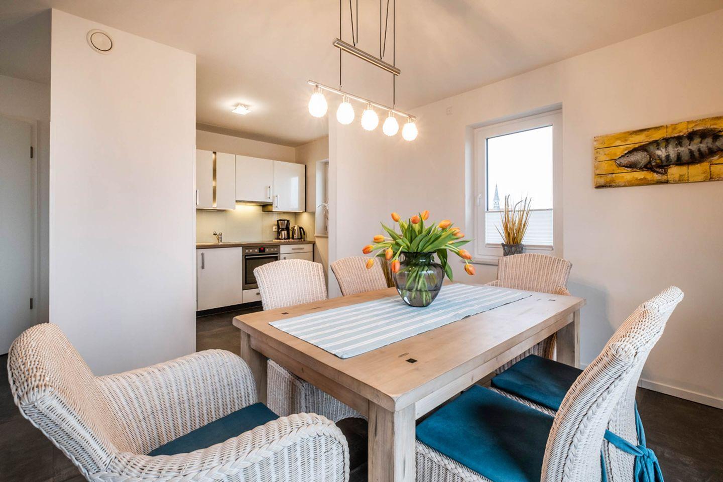 Die Ferienwohnung 3.3 ist eine moderne 3-Raum-Wohnung mit Balkon im 3.Obergeschoss. Die Küche ist offen zum Wohn-Essbereich. Der Essbereich geht in den Wohnbereich über. Das schöne Badezimmer verfügt über eine barrierefreie Dusche, WC, Handtuchtrockner und Haar-Föhn. . In der Wohnung befindet sich auch ein Gäste-WC.Vom Wohnbereich gelangen Sie direkt auf den Balkon, der mit Balkonmöbeln ausgestattet ist.