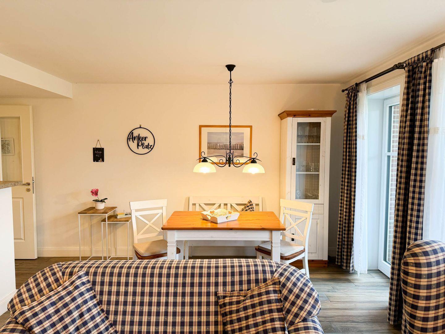 Das Apartment hat eine Größe von 62 m² und befindet sich im Parterre eines gepflegten Reetdach-Gebäudes. Es verfügt über ein helles und geräumiges Wohnzimmer, das harmonisch mit einer offenen Küche verbunden ist. Hier finden Sie alle Kochutensilien sowie einen Herd mit Ceranfeld, einen Backofen, eine Spülmaschine und eine Mikrowelle – ideal für die Zubereitung von köstlichen Mahlzeiten. Der Essbereich lädt zum gemeinsamen Schlemmen und Verweilen ein. Das Wohnzimmer ist mit einem gemütlichen Sofa und Sessel ausgestattet, was den perfekten Rahmen für einen entspannten Fernsehabend mit zwei vorhandenen TVs bietet (einer im Wohnzimmer und einer im Schlafzimmer). Mit dem Smart-TV können Gäste perfekt Radio hören und streamen.
