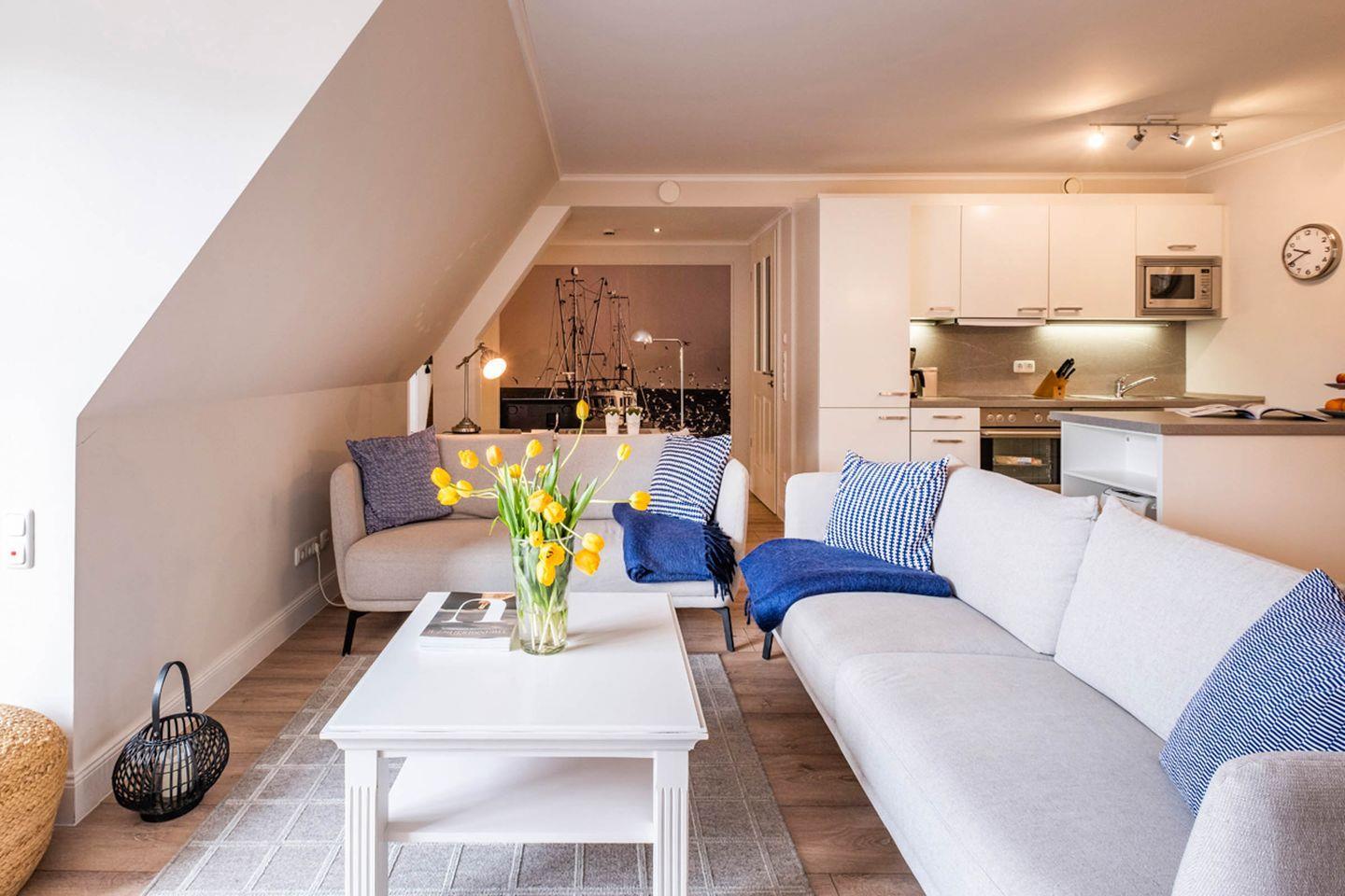 Das Büsumer Reethus Apartment 2.1 bietet auf 93 m² modernen Komfort für bis zu vier Gäste. Es verfügt über zwei Schlafzimmer, einen offenen Wohn- und Essbereich mit hochwertiger Einbauküche, Balkon, Sauna zur Eigennutzung sowie einen Privatparkplatz. Nur 250 Meter vom Meer, Strand und Einkaufsmöglichkeiten entfernt, ist es ideal für Familien und Erholungssuchende.