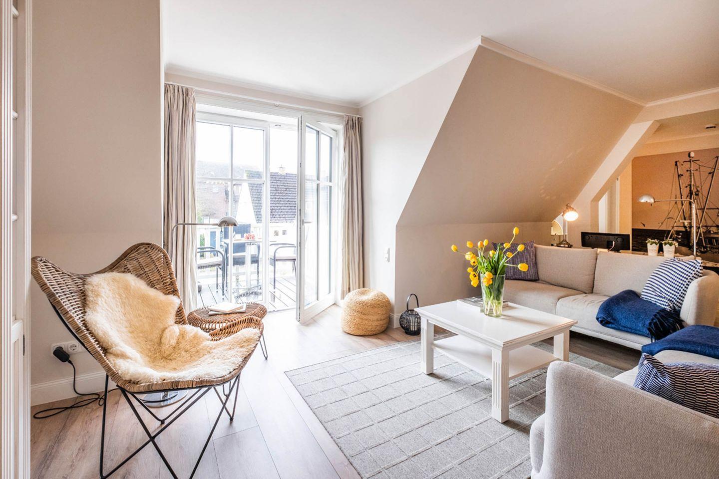 Moderne Ferienwohnung in Büsum mit Sauna, Balkon und nur 250 m zum Strand, ideal für Familien und Erholung.