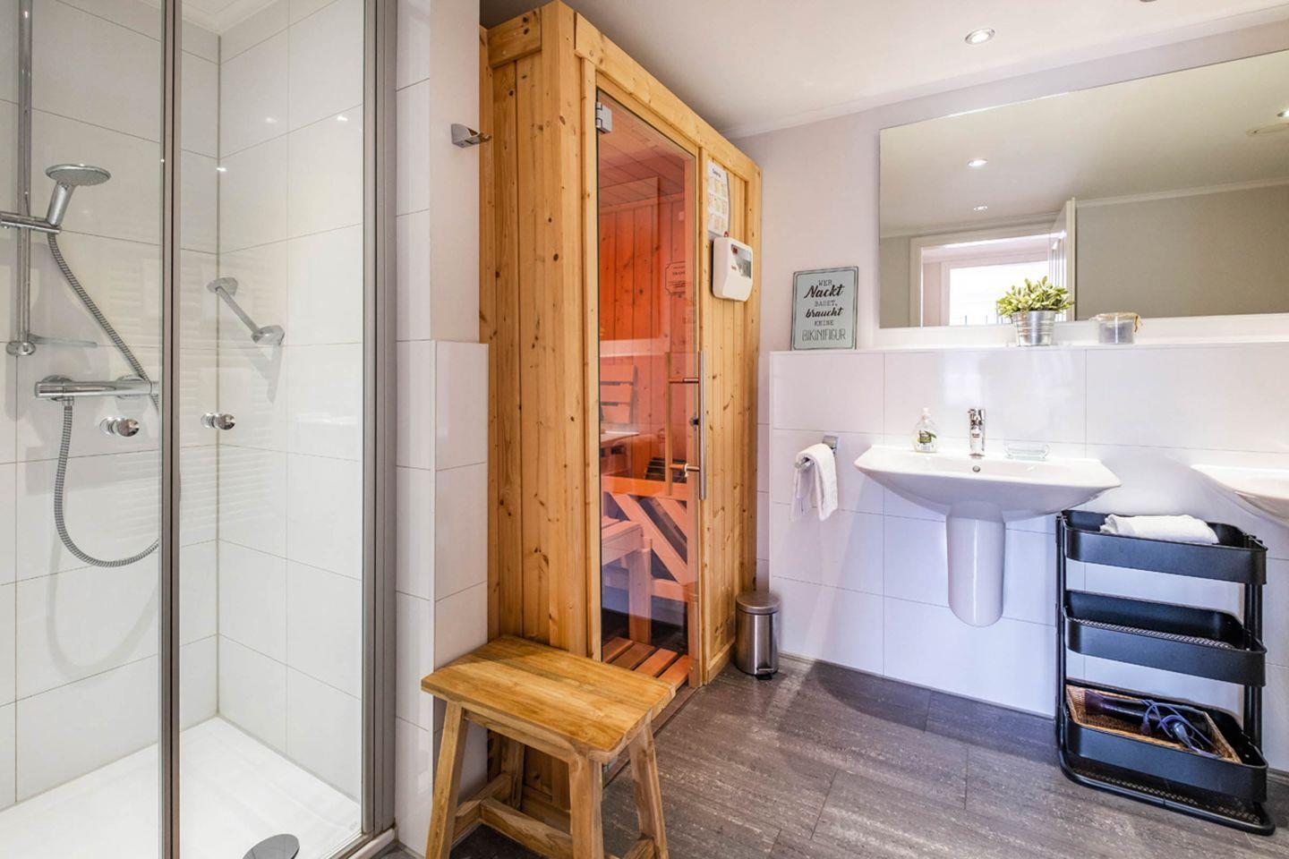Sanitär: Duschbad, Sauna, Gäste-WC, Föhn