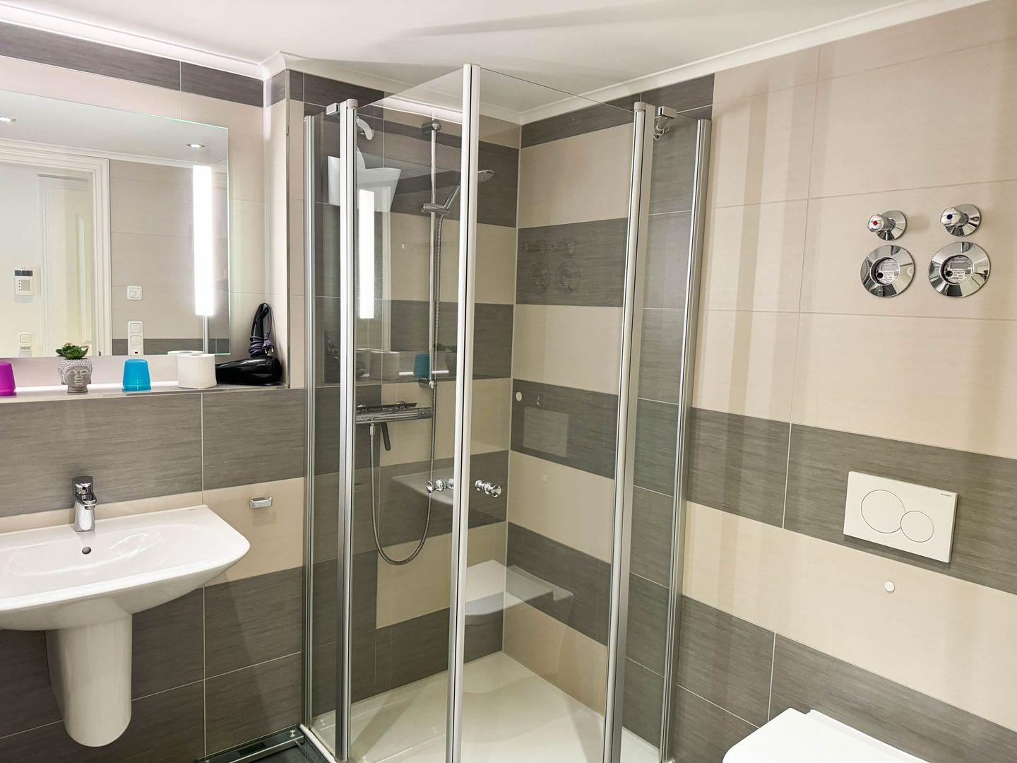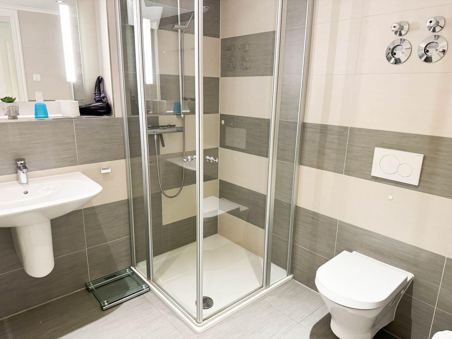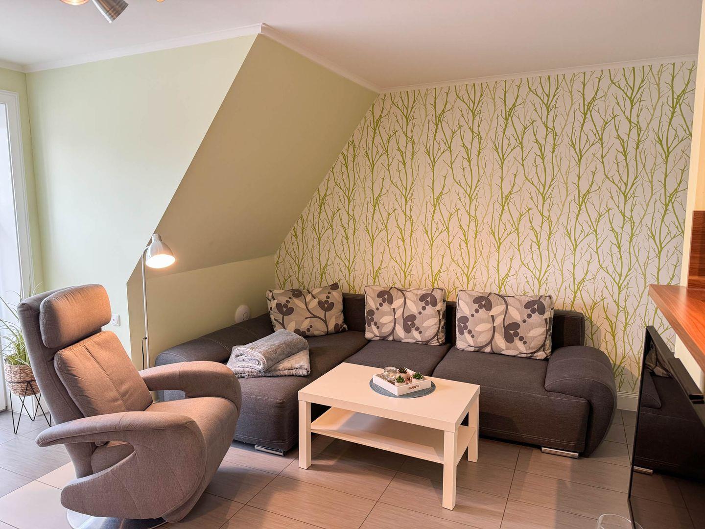 Das Appartement 2.4 befindet sich im I.OG mit Balkon. Im Wohnraum finden Sie eine gemütliche Couchgarnitur und einem Relax- Sessel. Die Küche und der Essbereich sind im Wohnbereich integriert. Das Schlafzimmer ist mit einem Boxspringbett in Komforthöhe und TV ausgestattet. Das Bad verfügt über eine barrierefreie Dusche/WC und Urinal. Fußbodenheizung befindet sich im ganzen Appartement. Einen Balkon erreichen Sie vom Wohnraum und den zweiten vom Schlafzimmer. Das Appartement verfügt über eine Gegensprechanlage mit Kamera. Im Keller finden Sie Waschmaschine und Trockner (gebührenpflichtig), Abstellraum für Fahrräder und einen gemeinschaftlichen Fitnessraum. Aufzug im Haus. Am Haus finden Sie einen weiteren abschließbaren Fahrradabstellraum und einen kleinen Spielplatz für unsere kleinen Gäste.