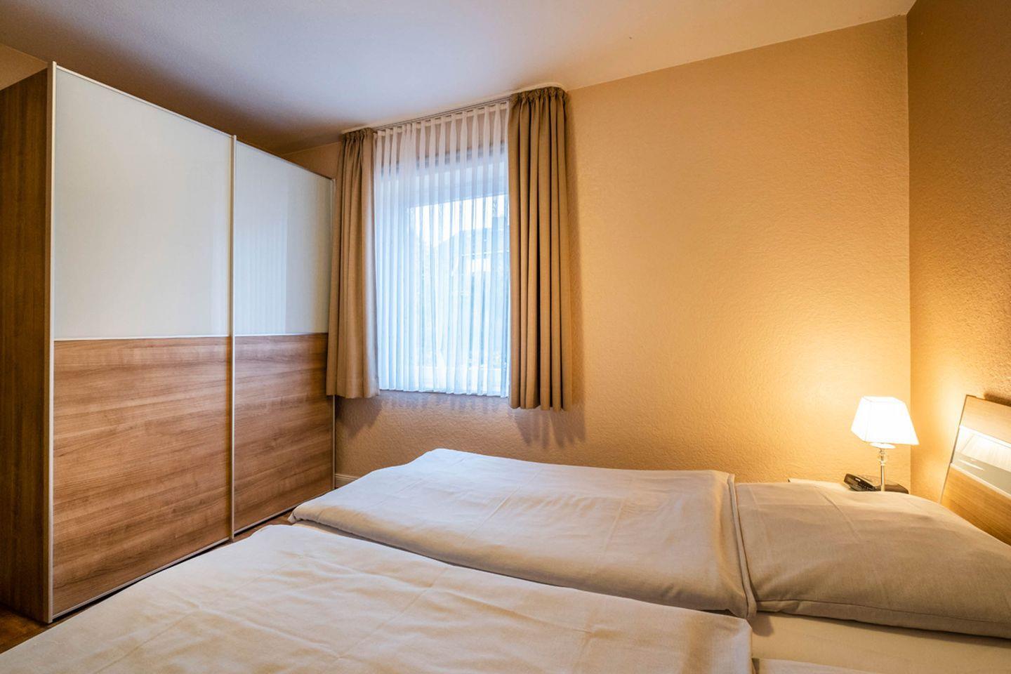 Das Bad verfügt über eine Dusche/WC. Vom Wohnbereich gelangen Sie auf die Terrasse. Das eine Schlafzimmer verfügt über ein Doppelbett und das zweite Schlafzimmer über 2 Einzelbetten. Der Wohnung ist ein PKW - Stellplatz direkt am Haus zugehörig. Einen offenen Fahrradunterstand halten wir für Sie bereit.