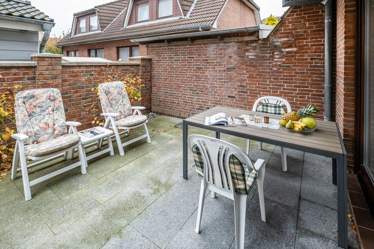Die Ferienwohnung 3 liegt im Erdgeschoss und verfügt über eine Terrasse in West-Lage.