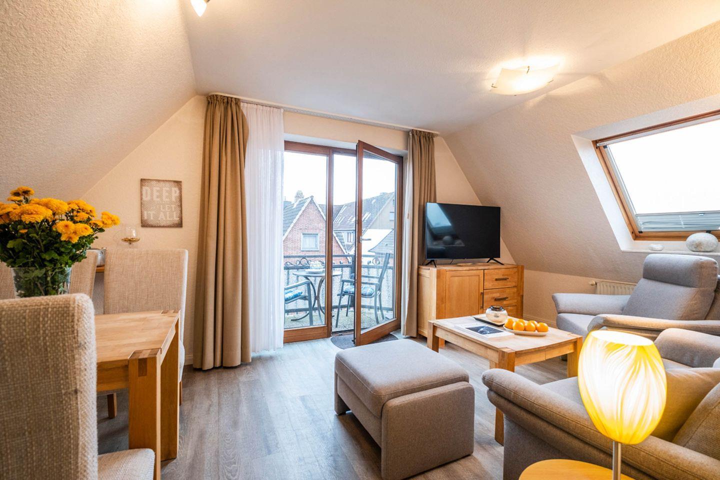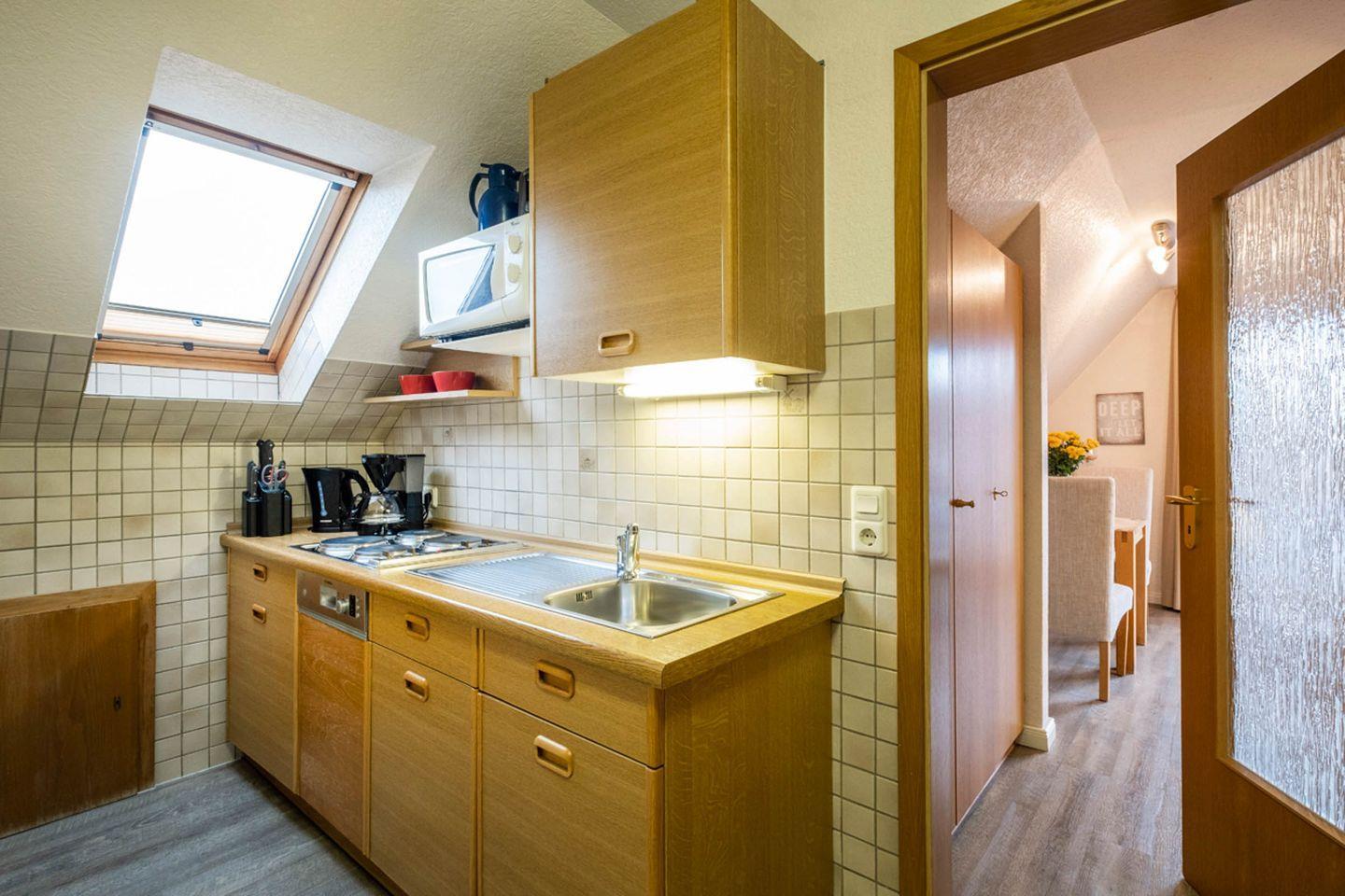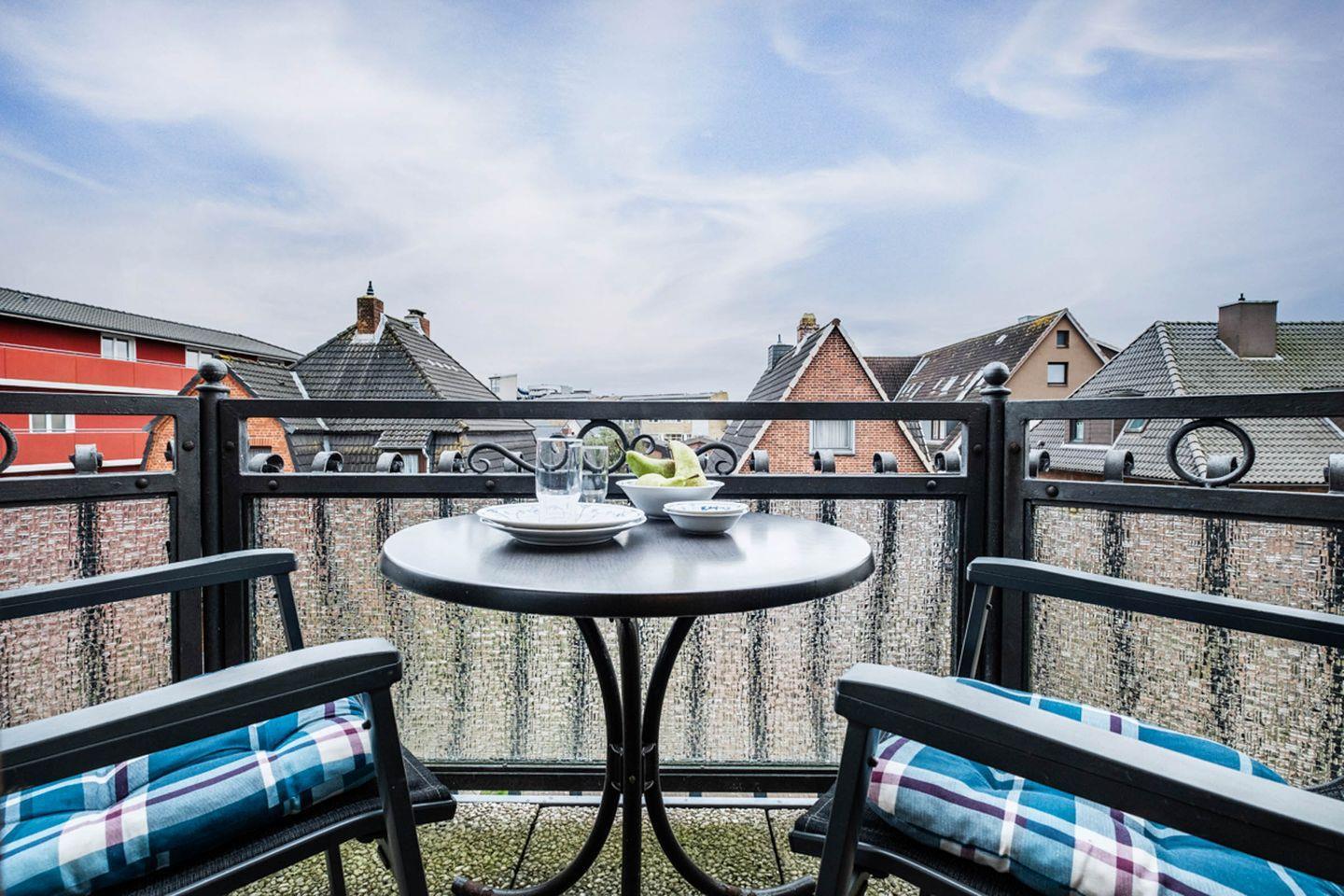 Die Ferienwohnung 7 liegt im Dachgeschoss und verfügt über einen Balkon in Süd-West-Lage. Es gibt leider keinen Aufzug im Haus.