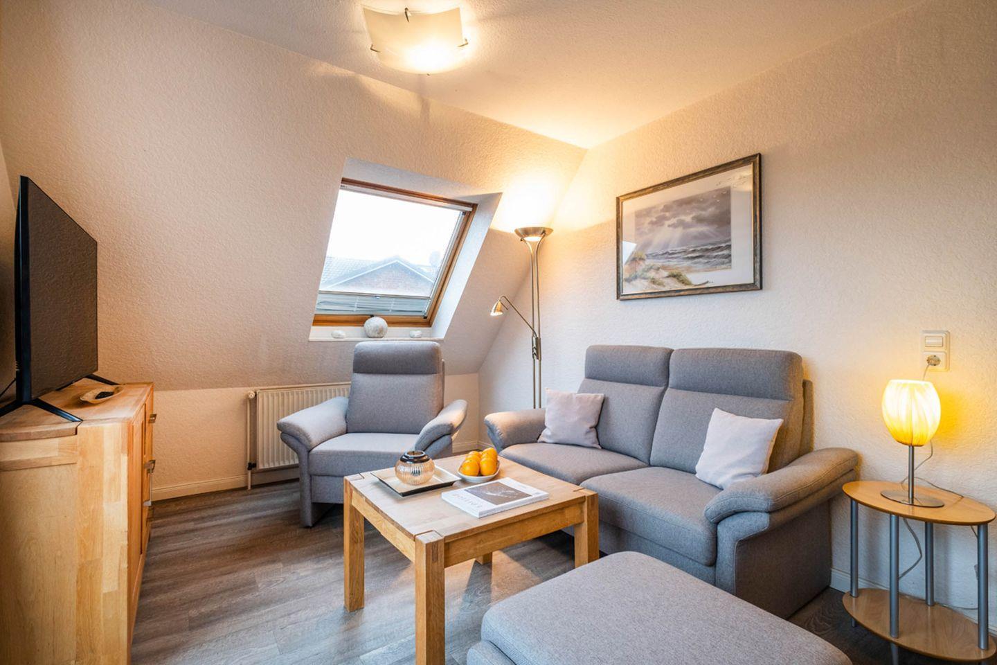 Die Wohnung Haus Kähler 1 Wohnung 7 im 2. Stock bietet auf 33 m² ein Schlafzimmer, ein modernes Wohnzimmer mit offener Küche und Balkon. Zur Ausstattung zählen Spülmaschine, Mikrowelle, WLAN und TV. Einkaufsmöglichkeiten, Strand und Restaurants sind nur 250 m entfernt. Ein Privatparkplatz ist vorhanden.