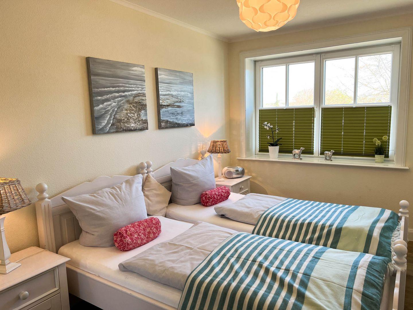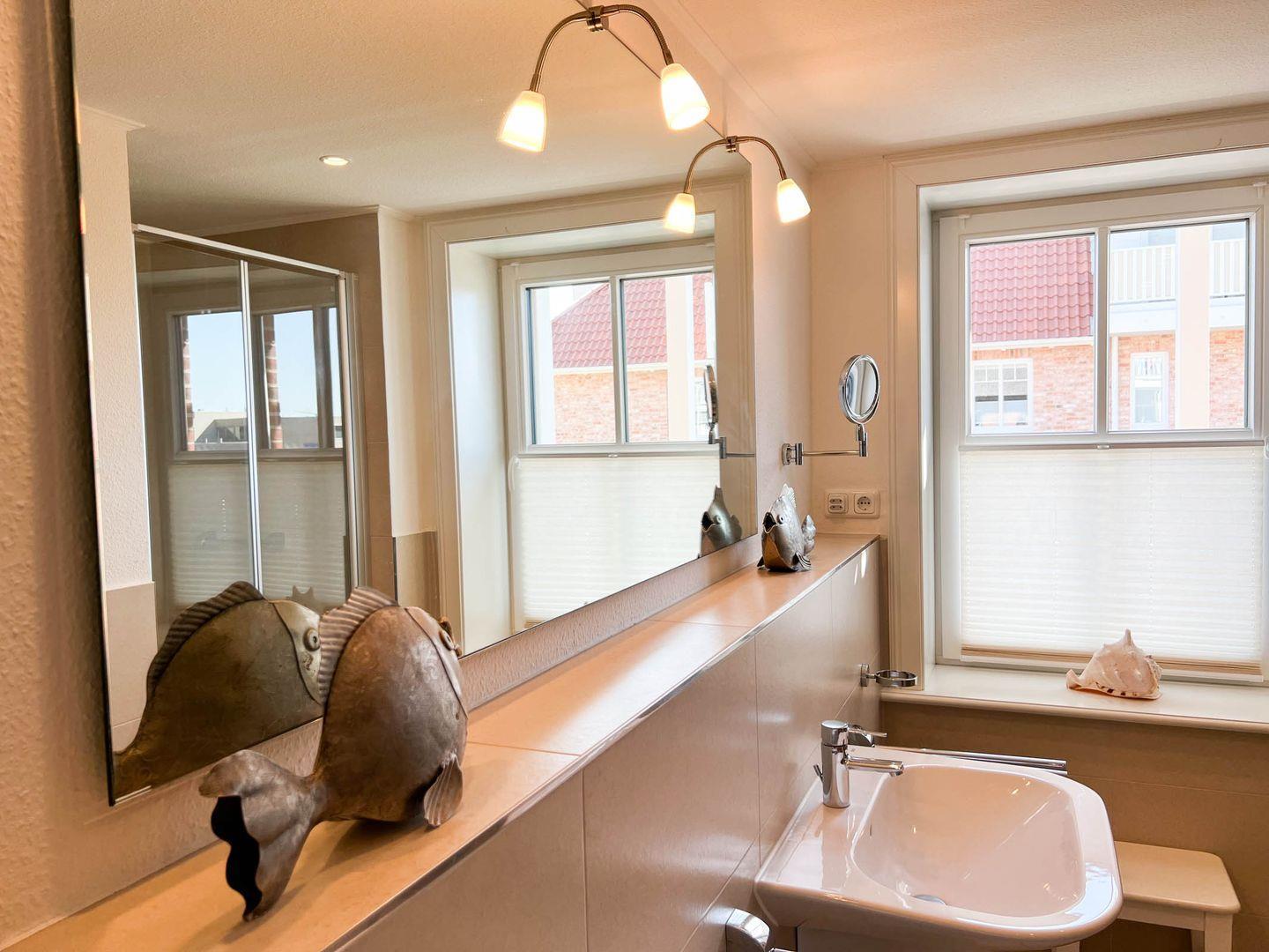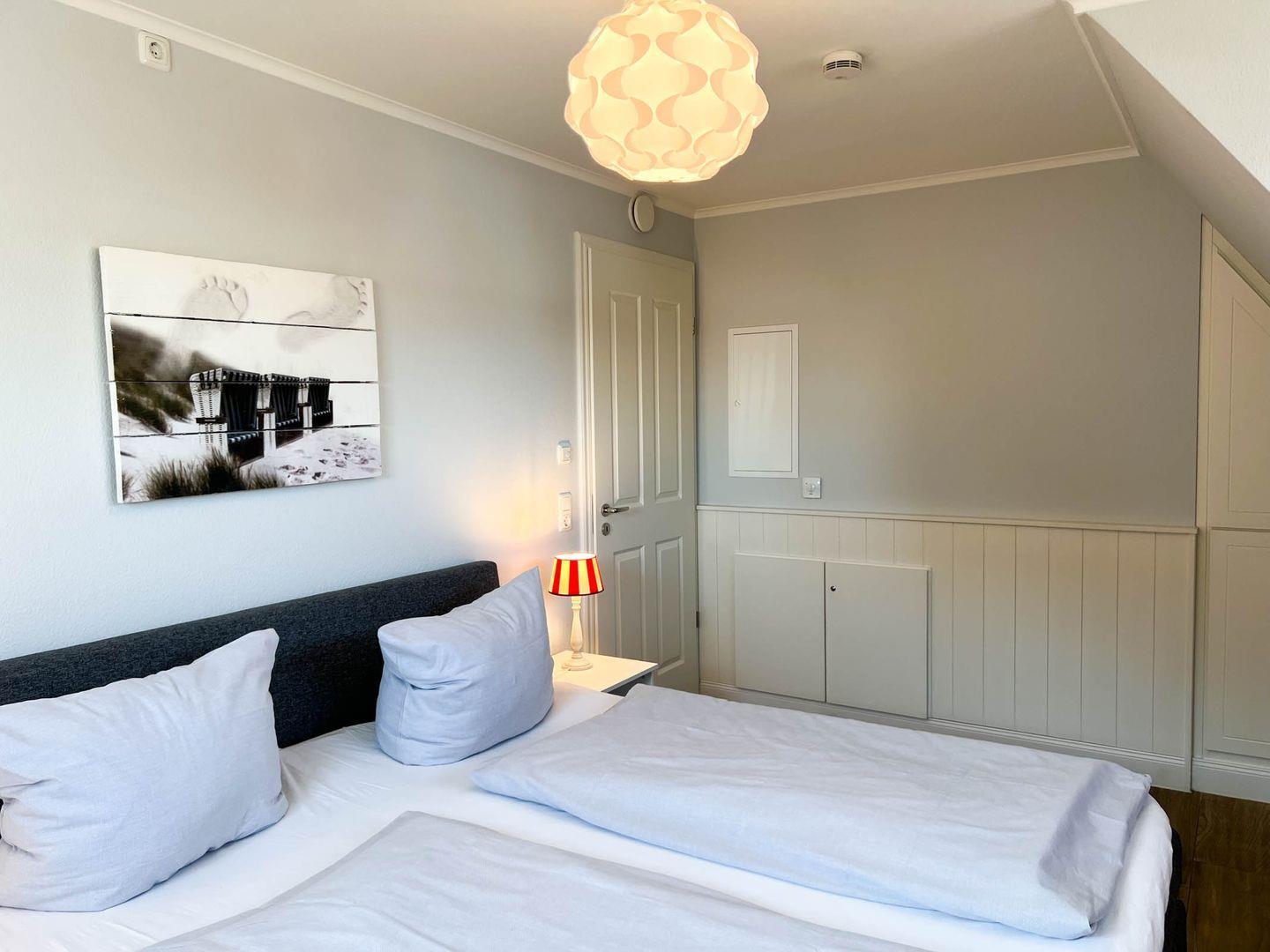 Das Appartement 2.6 befindet sich im I.OG mit Balkon. Im Wohnraum finden Sie eine gemütliche Couchgarnitur. Die Küche und der Essbereich sind im Wohnbereich integriert. Ein Schlafzimmer ist mit einem Boxspringbett in Komforthöhe und TV ausgestattet. Das zweite Schlafzimmer ist mit zwei zusammenstehenden Einzelbetten mit Komforthöhe und mit einem TV ausgestattet. Das Bad verfügt über eine barrierefreie Dusche/WC und Bidet. Das Appartement verfügt zusätzlich über ein Gäste- WC. Fußbodenheizung befindet sich im ganzen Appartement. Die beiden Balkone erreichen Sie vom Wohnraum . Das Appartement verfügt über eine Gegensprechanlage mit Kamera. Im Keller finden Sie Waschmaschine und Trockner (gebührenpflichtig), Abstellraum für Fahrräder und einen gemeinschaftlichen Fitnessraum. Aufzug im Haus. Am Haus finden Sie einen weiteren abschließbaren Fahrradabstellraum und einen kleinen Spielplatz für unsere kleinen Gäste.