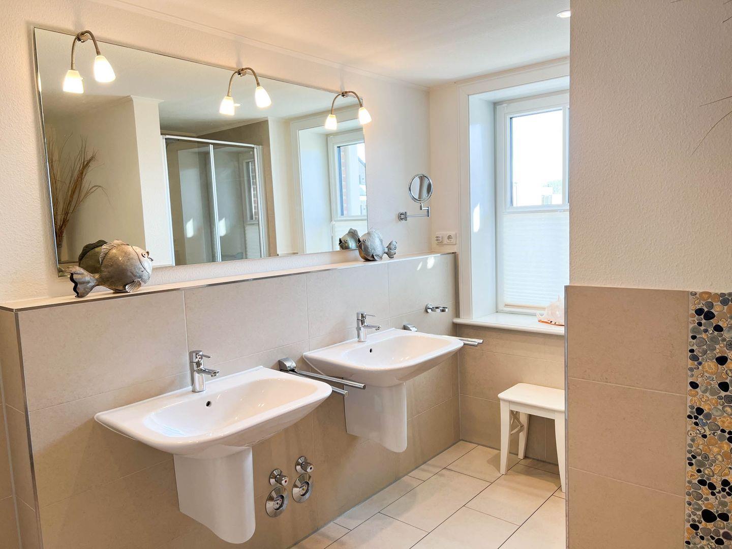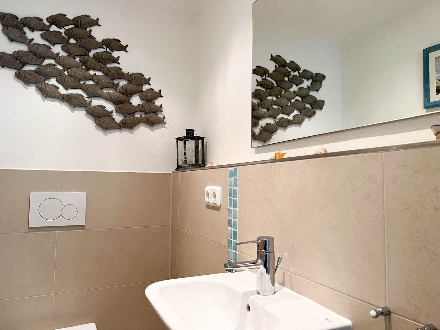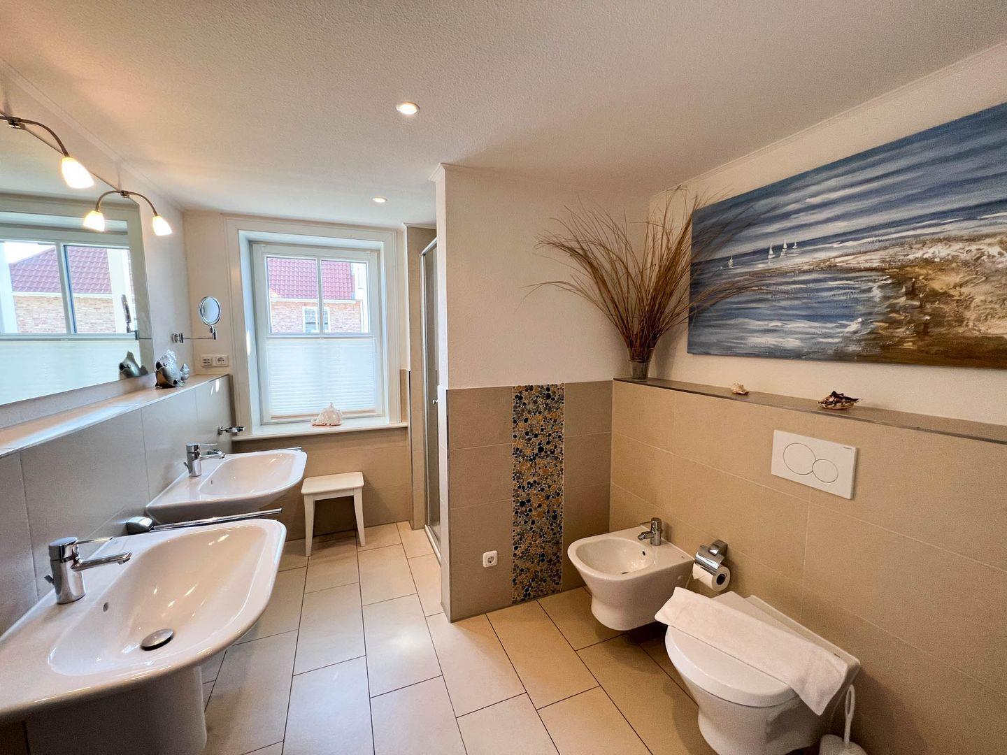 Sanitär: Duschbad, Bidet, Gäste-WC, Föhn