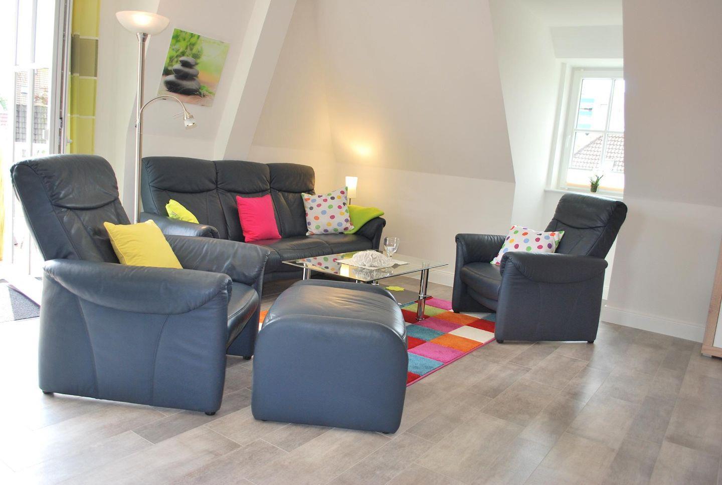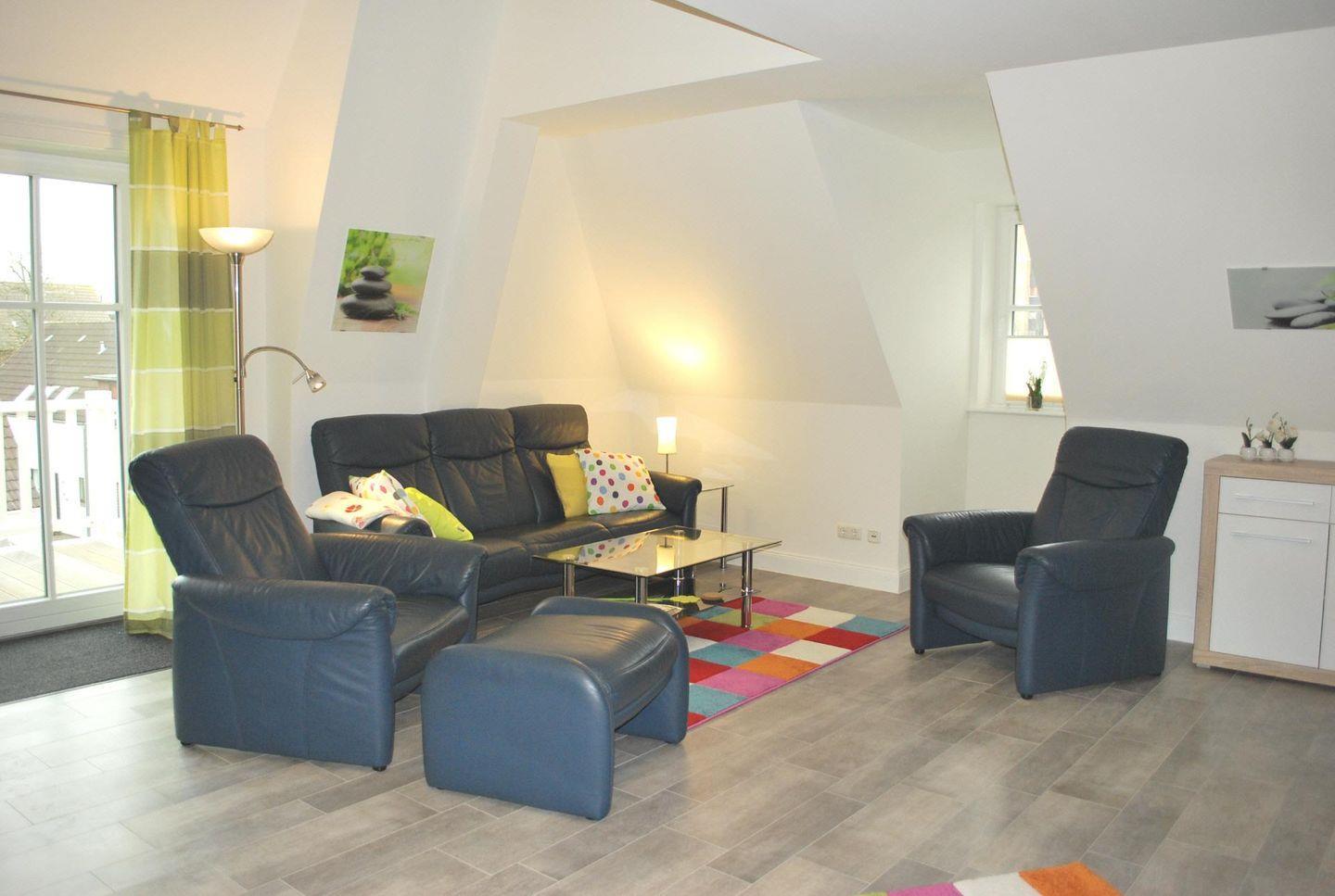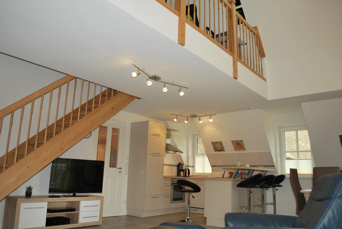 Das Appartement 3.1 befindet sich im Dachgeschoß mit Balkon. Im Wohnraum finden Sie eine gemütliche Couchgarnitur mit zwei Sesseln und einem Hocker. Die Küche und der Essbereich sind im Wohnbereich integriert. Das Schlafzimmer ist mit einem Doppelbett in Komforthöhe und TV ausgestattet. Das Bad verfügt über eine barrierefreie Dusche/WC und Sauna. Im Appartement finden Sie eine Galerie mit Couch zum relaxen. Fußbodenheizung befindet sich im ganzem Appartement. Den Balkon erreichen Sie vom Wohnraum. Das Appartement verfügt über eine Gegensprechanlage mit Kamera. Im Keller finden Sie Waschmaschine und Trockner (gebührenpflichtig), Abstellraum für Fahrräder und einen gemeinschaftlichen Fitnessraum. Aufzug im Haus. Am Haus finden Sie einen weiteren abschließbaren Fahrradabstellraum und einen kleinen Spielplatz für unsere kleinen Gäste.