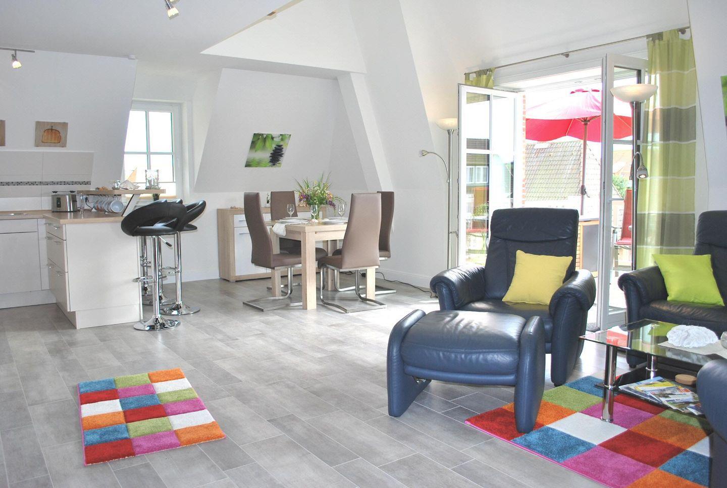 Modernes Reethus-Apartment in Büsum mit Sauna, Balkon und Strandnähe für erholsame Urlaubstage.