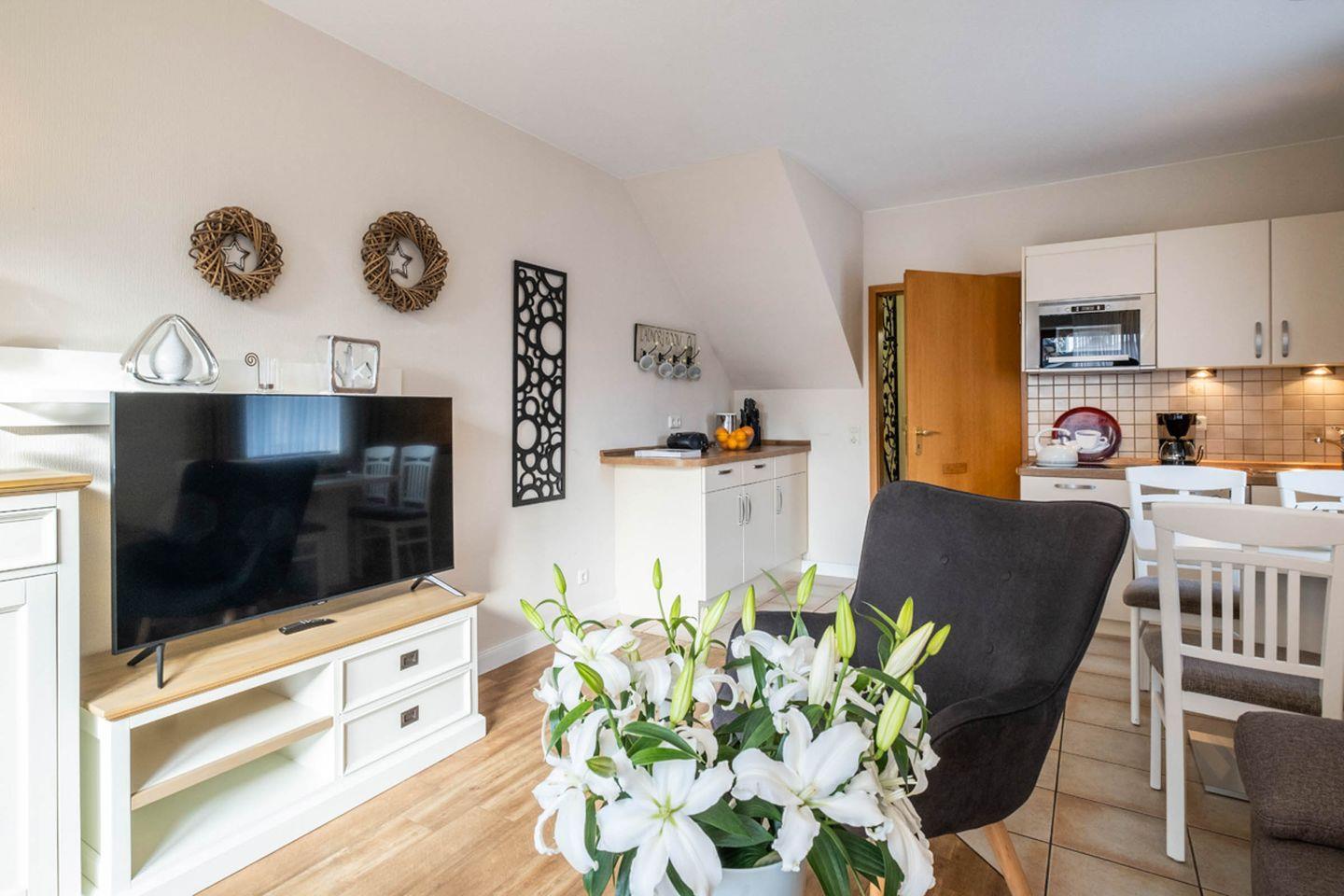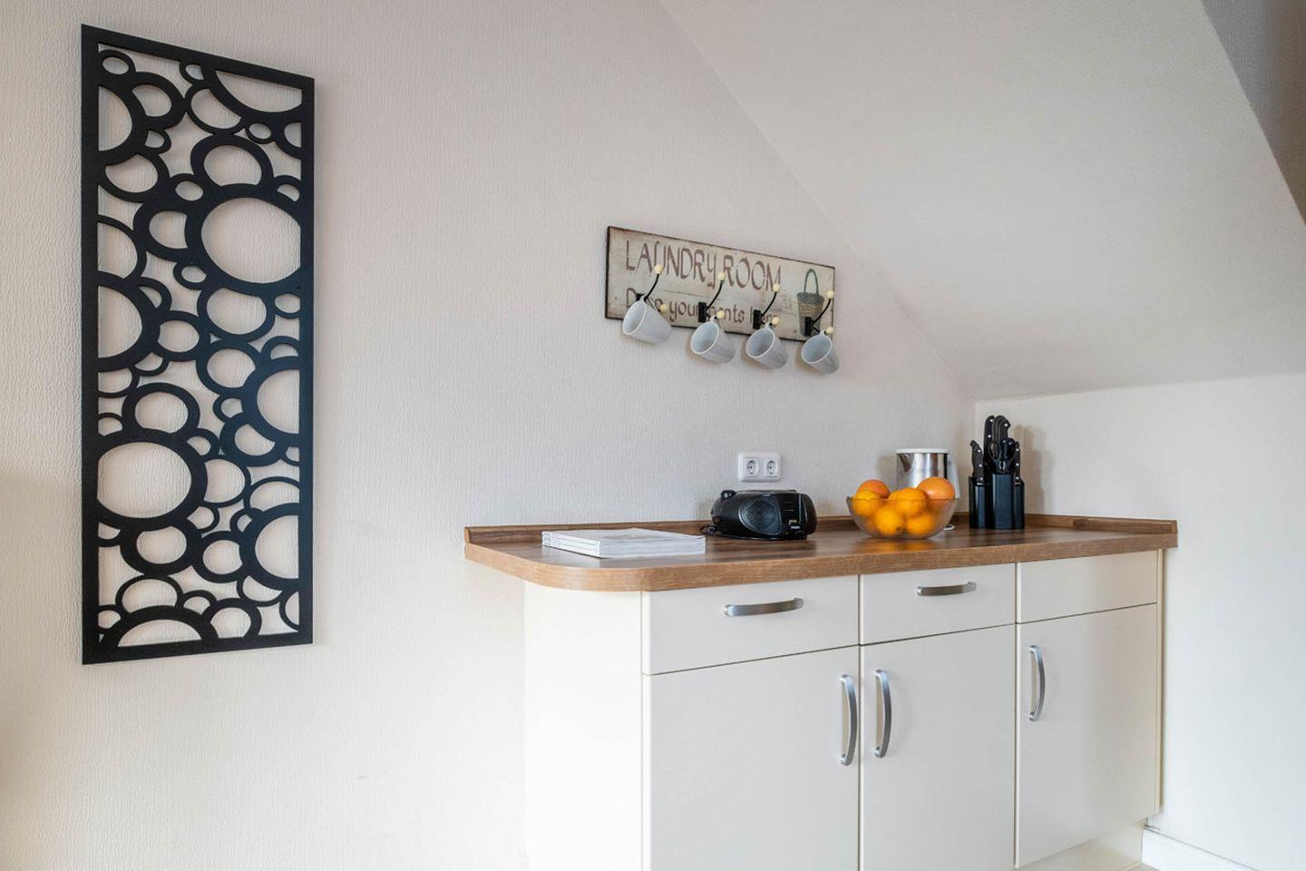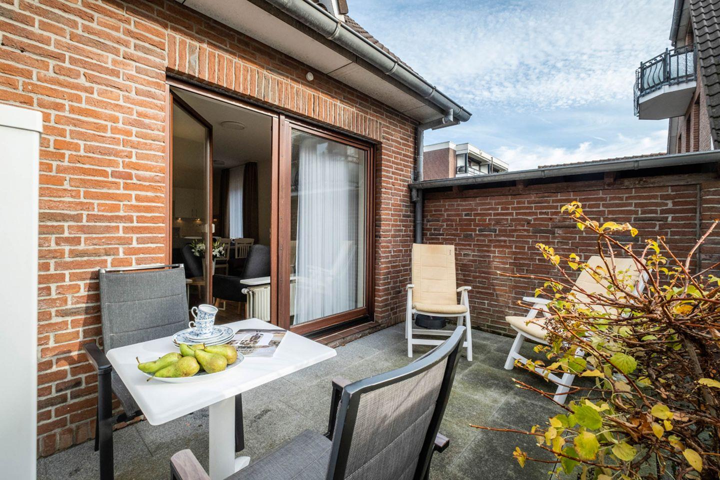 Die Ferienwohnung 9 ist eine Maisonette-Wohnung und verfügt über eine Terrasse in West-Lage.