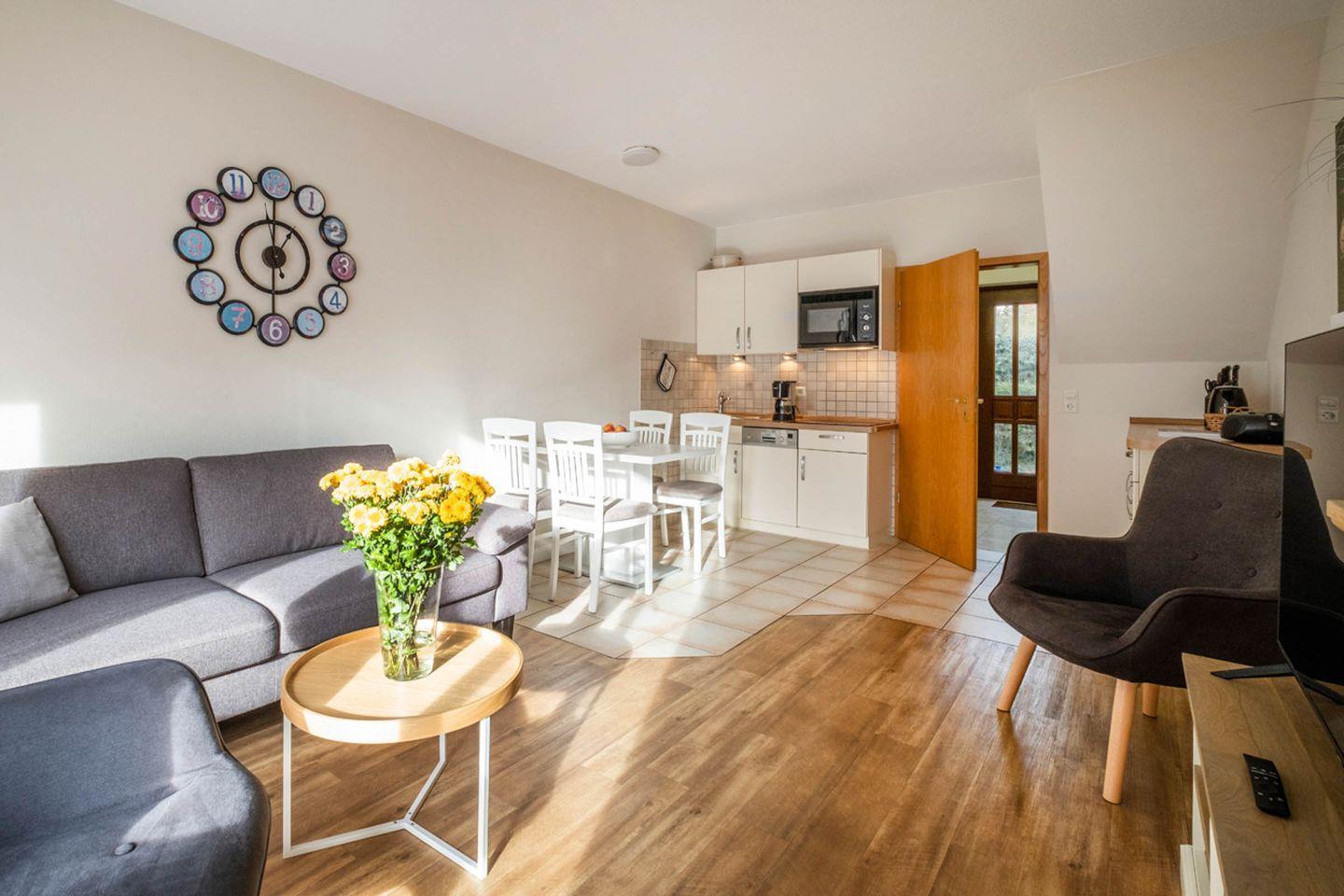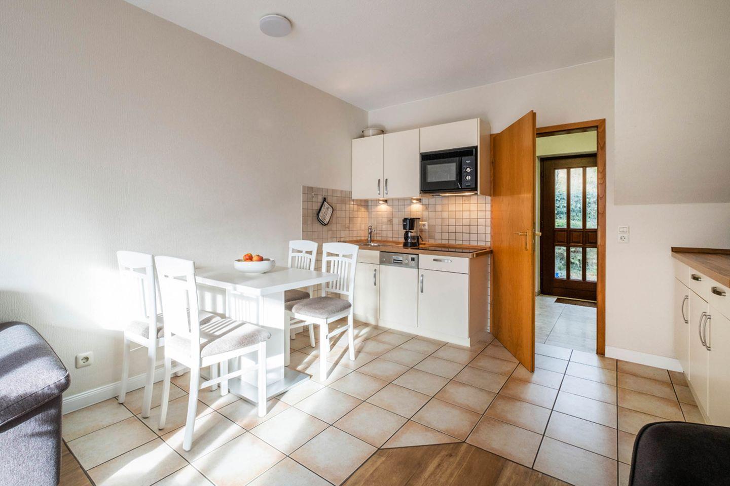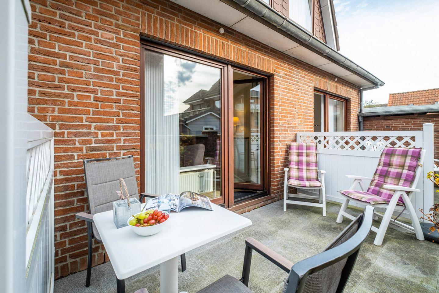 Die Ferienwohnung 10 ist eine Maisonette-Wohnung und verfügt über eine Terrasse in West-Lage.