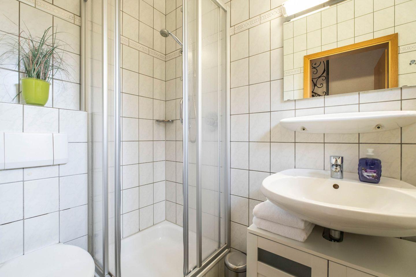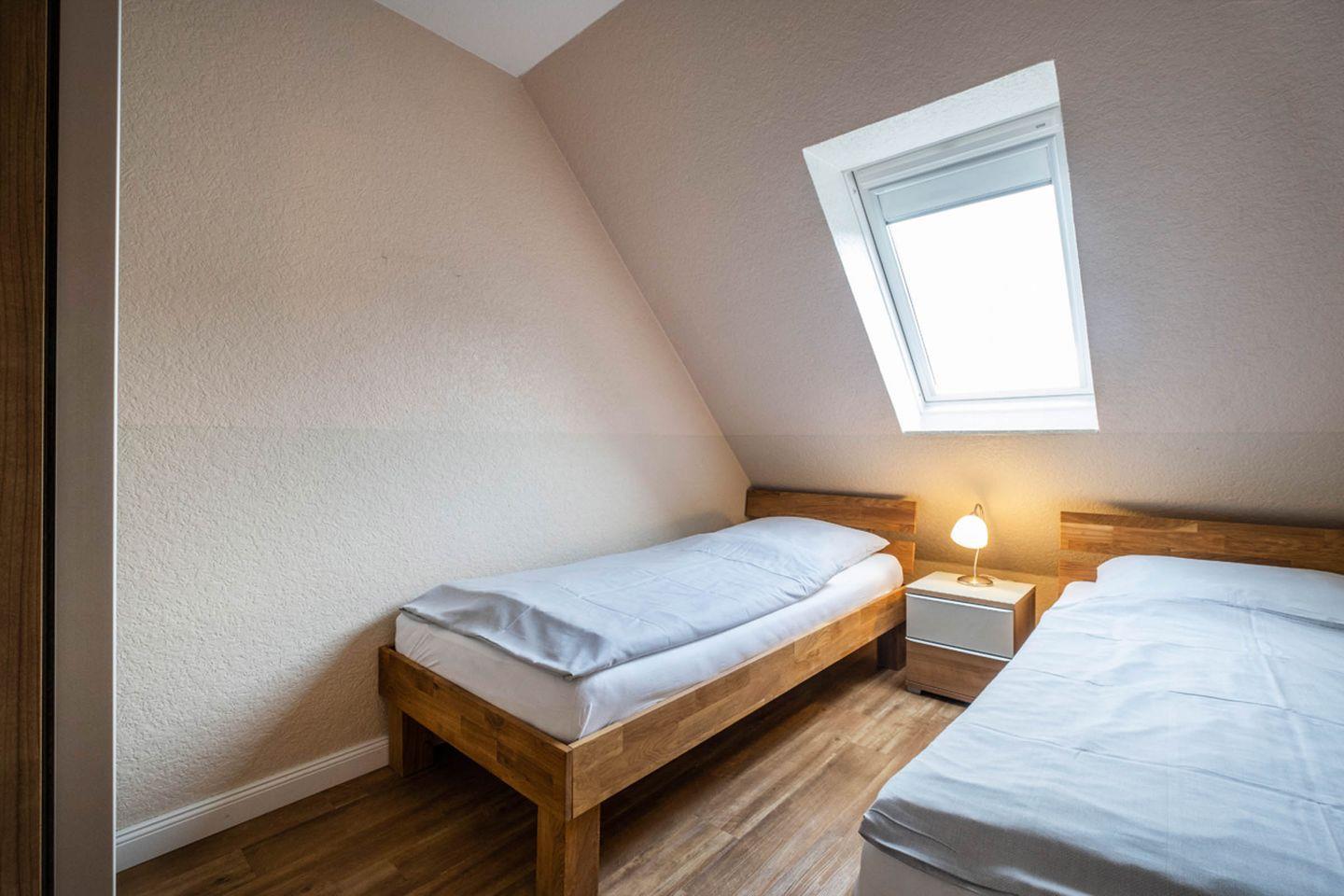 Im 1. Obergeschoss befinden sich 2 Schlafzimmer, das eine Schlafzimmer verfügt über ein Doppelbett und das zweite Schlafzimmer über 2 Einzelbetten.