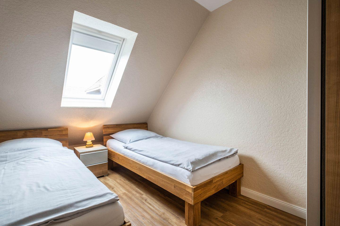 Im 1. Obergeschoss befinden sich 2 Schlafzimmer, das eine Schlafzimmer verfügt über ein Doppelbett und das zweite Schlafzimmer über 2 Einzelbetten.