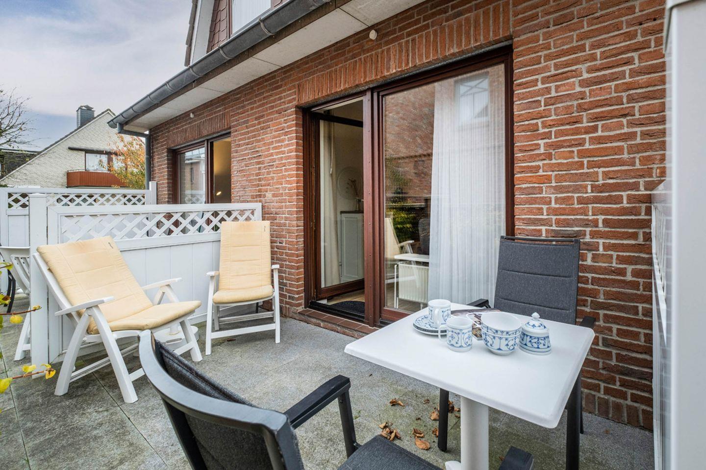 Die Ferienwohnung 11 ist eine Maisonette-Wohnung und verfügt über eine Terrasse in West-Lage.