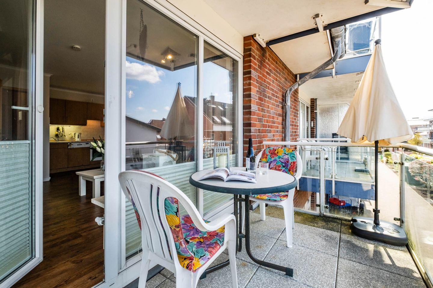 Moderne 1-Zimmer-Wohnung in Büsum, 250 m vom Strand entfernt, mit Balkon, WLAN und Privatparkplatz.