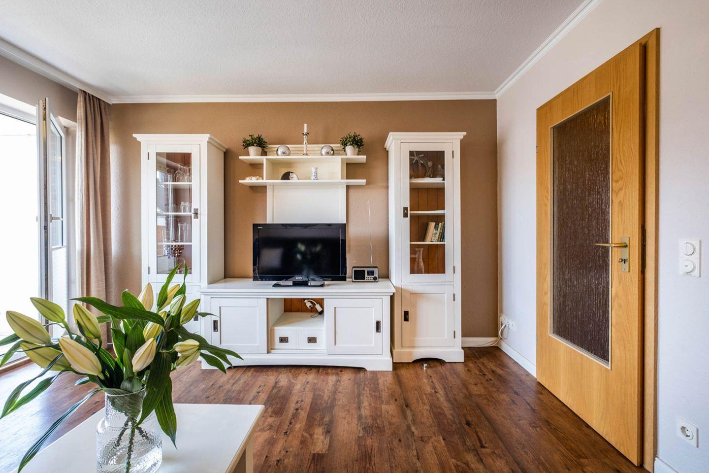 Die Ferienwohnung 2.3 (41qm) liegt im 1. Obergeschoss und verfügt über einen Balkon in Süd-West-Lage. Ein Aufzug befindet sich im Haus.