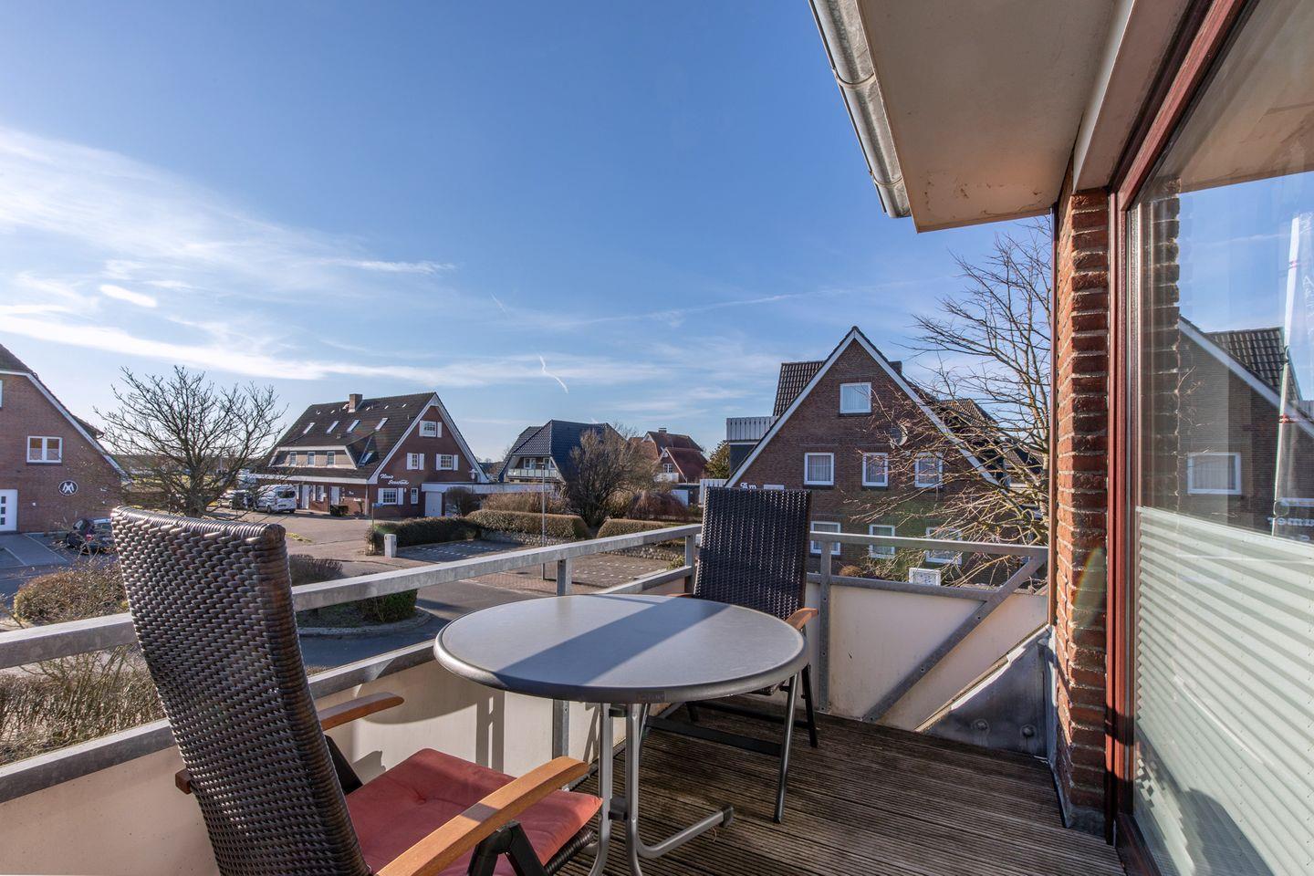 Die Ferienwohnung 6 (46 qm) liegt im 1. Obergeschoss und verfügt über einen Balkon in West-Lage. Es gibt leider keinen Aufzug im Haus.