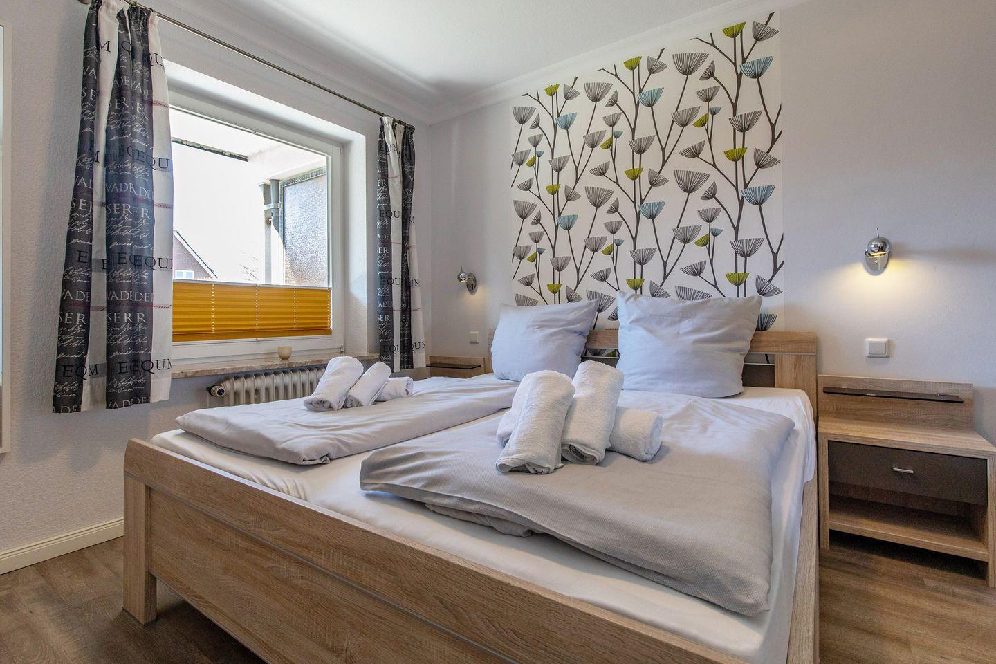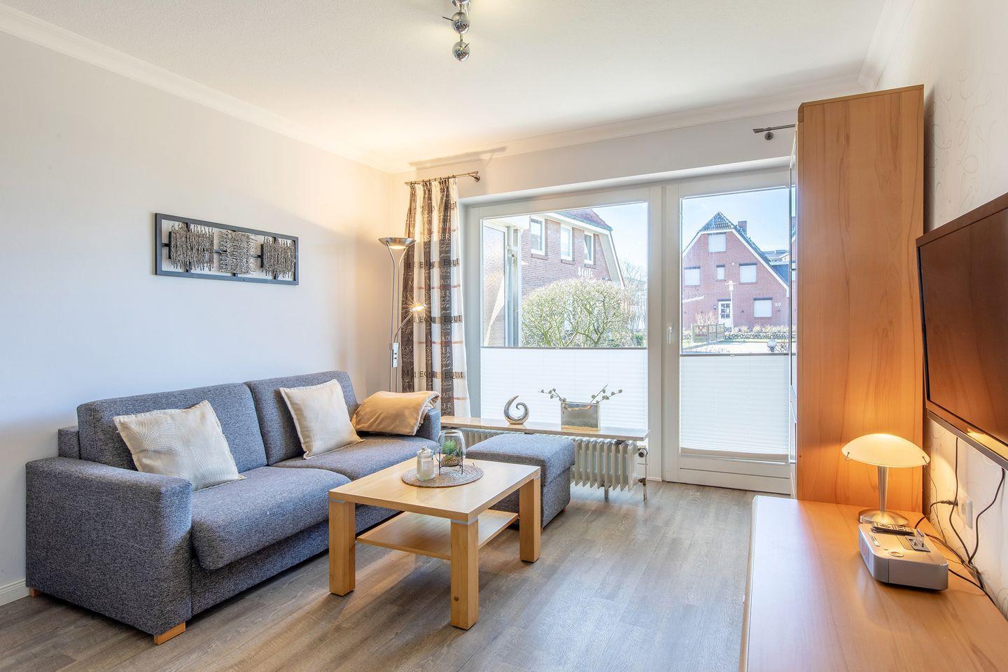 Moderne Nichtraucher-Ferienwohnung in Büsum mit Terrasse, Gartenmöbeln und privatem Parkplatz, nur 250 Meter vom Strand entfernt.