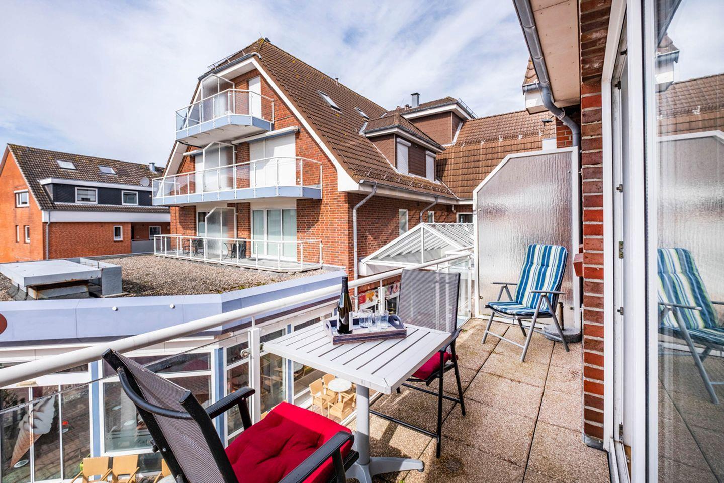 Moderne Ferienwohnung in Büsum mit zwei Schlafzimmern, zwei Bädern, Balkon und privatem Parkplatz, ideal für Familien und Paare.