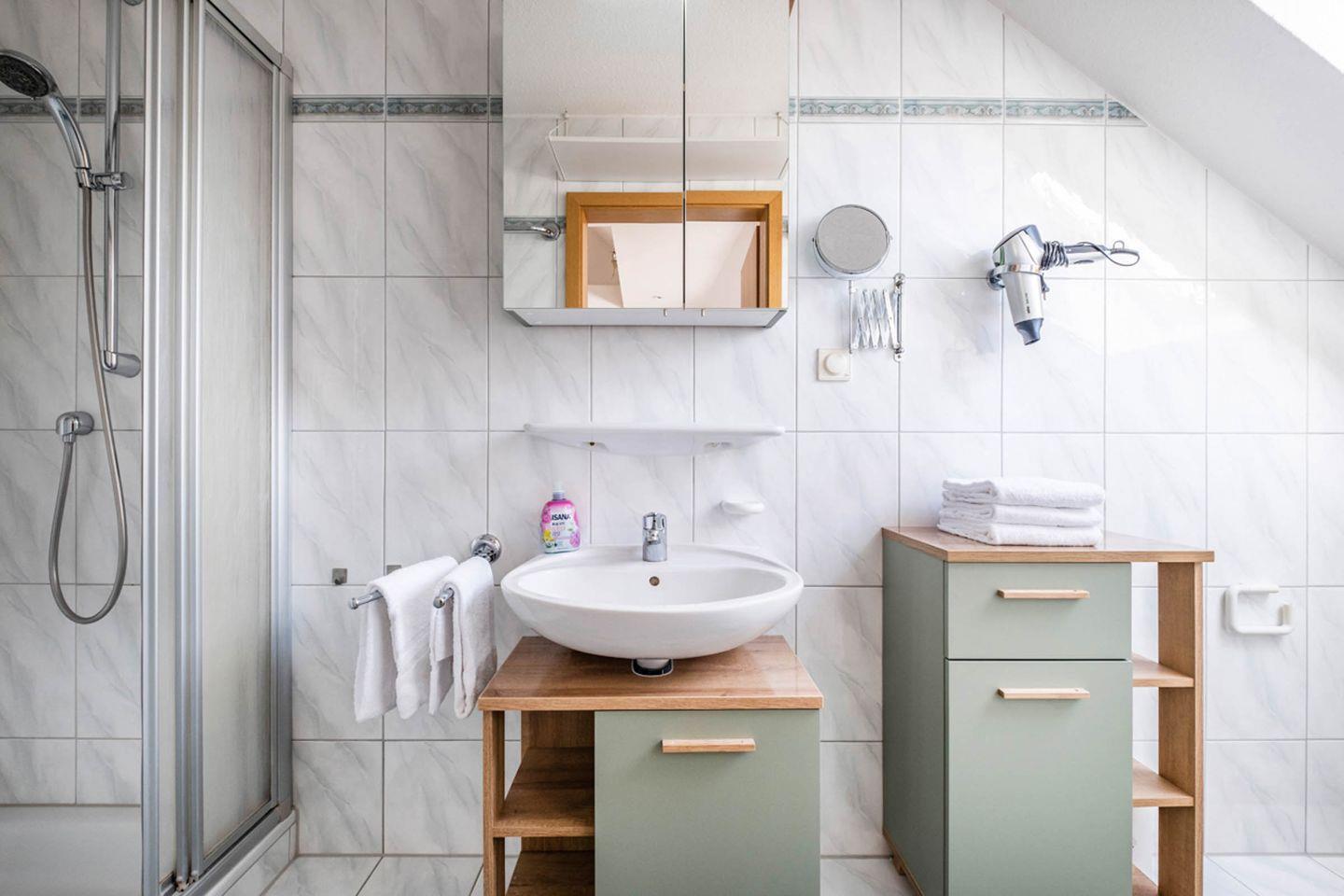 Das Bad verfügt über eine Dusche/WC. Das Schlafzimmer verfügt über ein Doppelbett.
