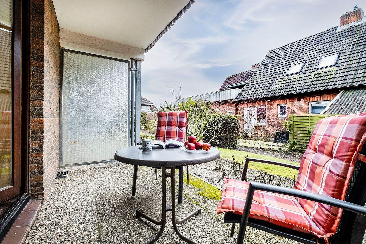 Gemütliche Ferienwohnung in Büsum mit Terrasse, Gartenblick und kostenfreiem WLAN, nur 250 m vom Strand und Einkaufsmöglichkeiten entfernt.