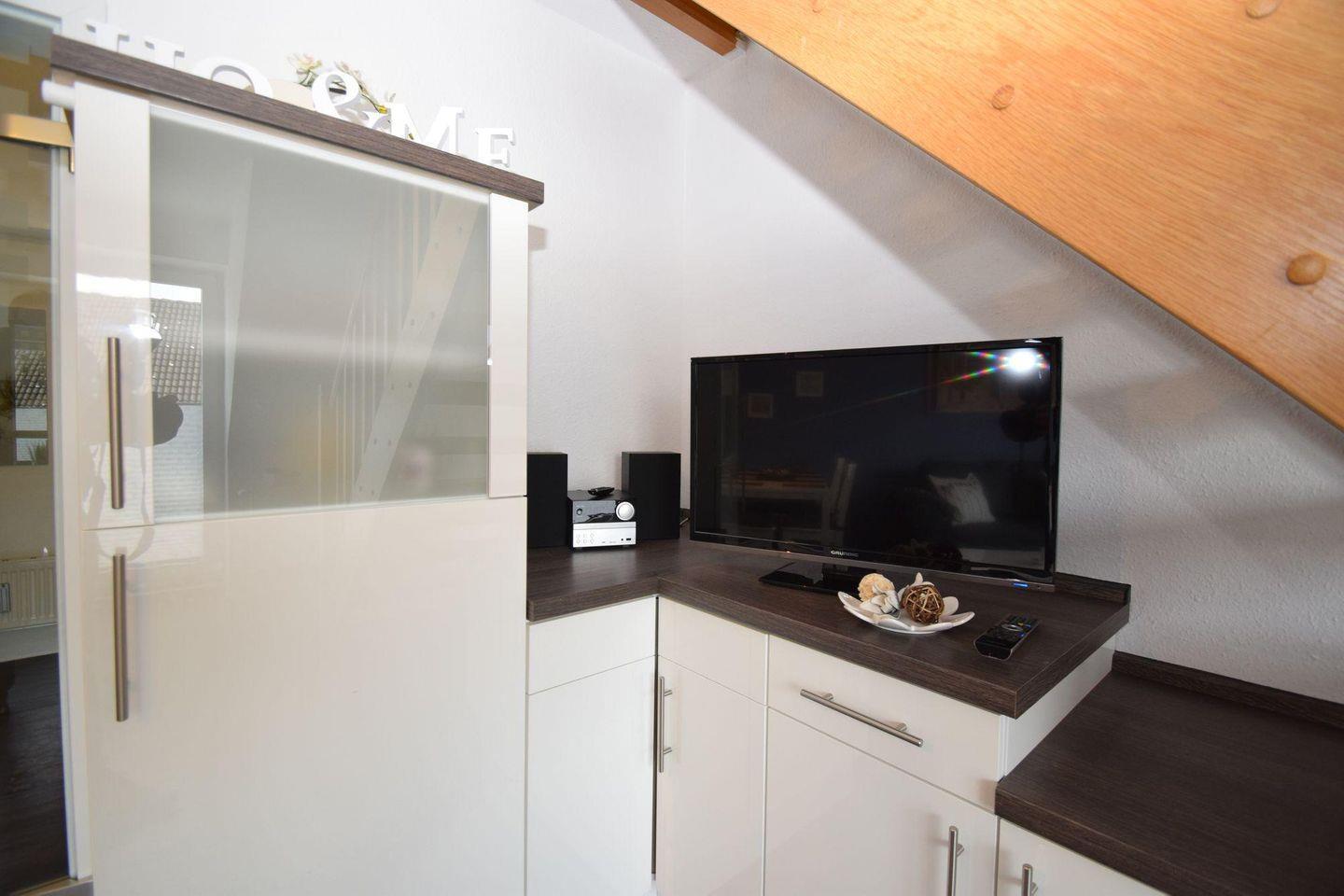 Im unteren Bereich der Wohnung erwartet Sie: 1 Wohnzimmer mit Essbereich, eine kleine Küchenzeile und 1 Duschbad.