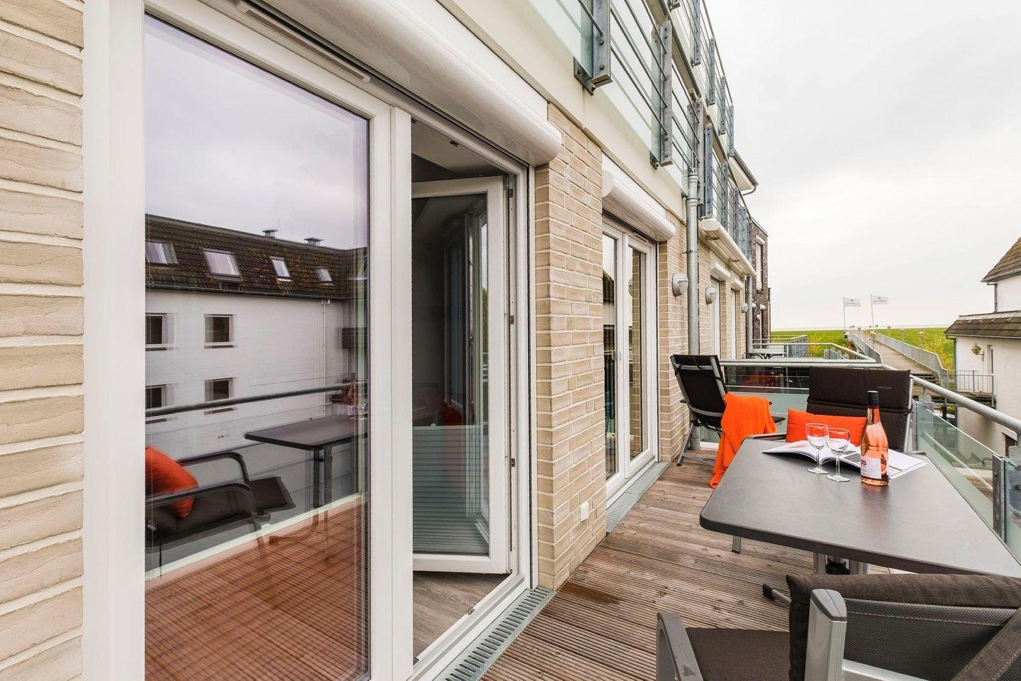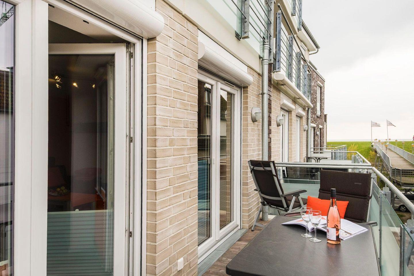 Moderne Ferienwohnung am Nordseedeich mit Balkon und seitlichem Meerblick in Büsum.